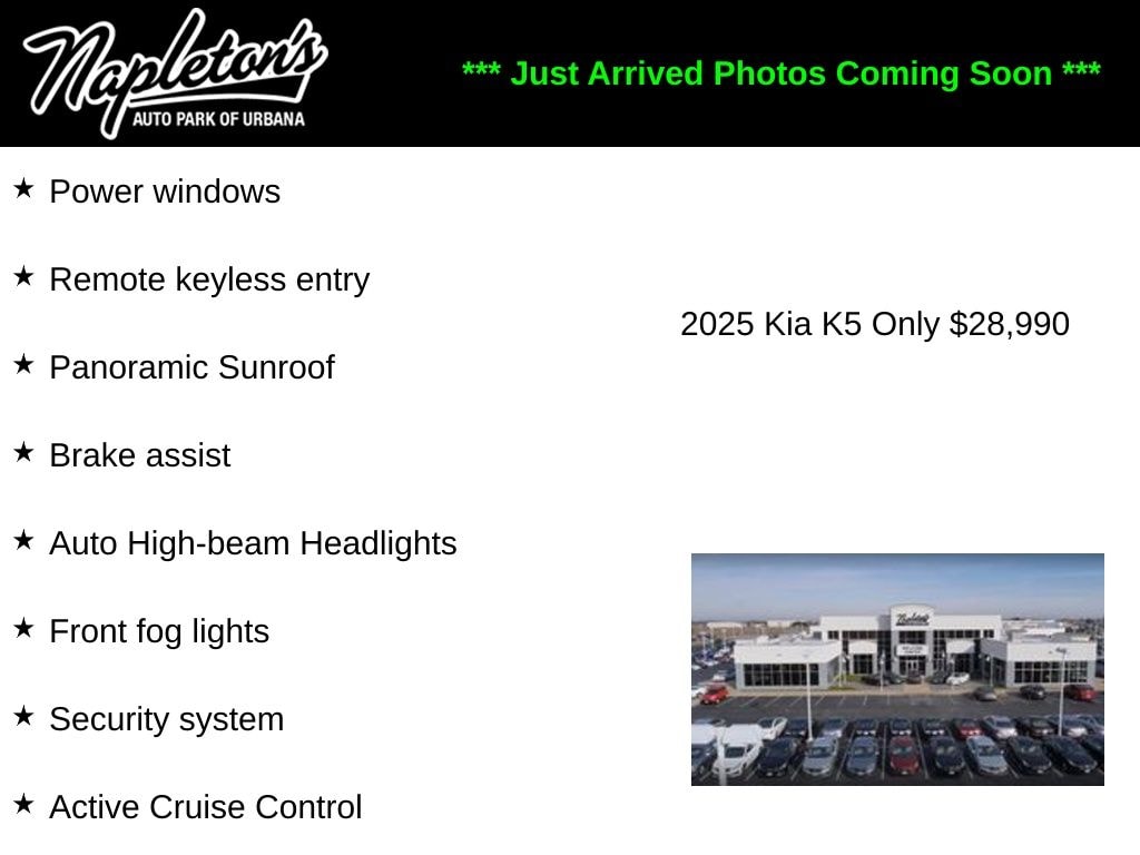 Discover the perfect blend of style, performance, and technology in the 2025 Kia K5 GT-Line w/ Premium Package. Experience the difference for yourself by scheduling a test drive at our showroom today. We're confident that once you get behind the wheel, you'll be captivated by the exceptional driving dynamics and premium amenities that this Kia K5 has to offer.