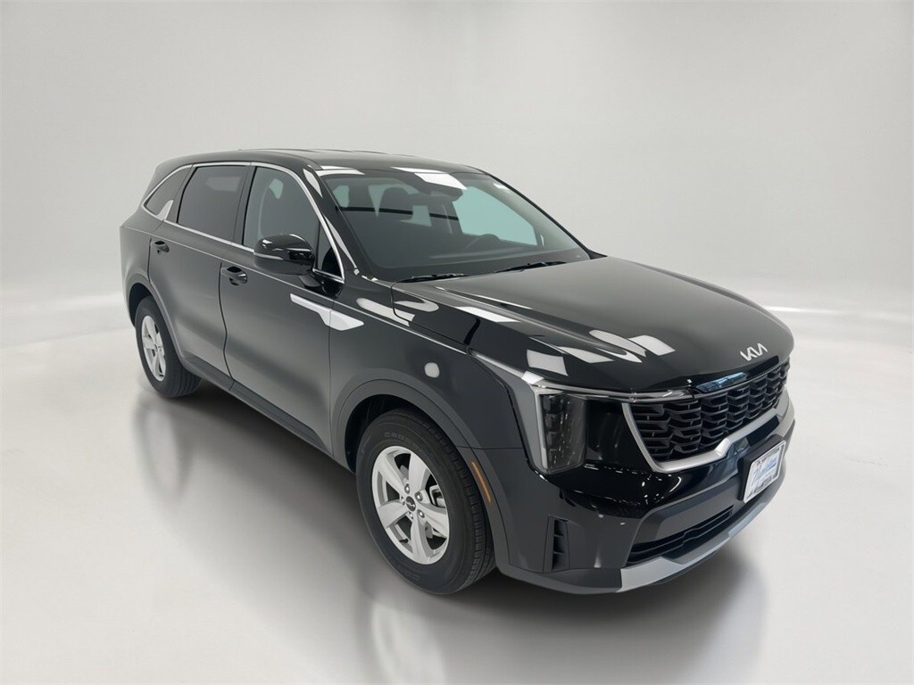Certified. Ebony Black 2025 Kia Sorento 4D Sport Utility LX 2.5L I4 DGI DOHC 16V LEV3-SULEV30 191hp FWD Clean CARFAX.