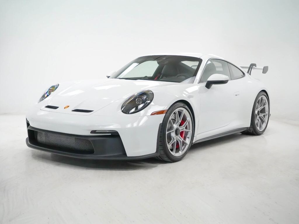 This exceptionally low-mileage 2022 Porsche 911 GT3 is finished in White over a Black Leather/Race-Tex interior with Guards Red stitching, delivering one of the most visceral driving experiences Porsche has ever created. Powered by the legendary naturally aspirated 4.0L flat-six paired with PDK, the 992 GT3 combines track-focused engineering with everyday drivability.