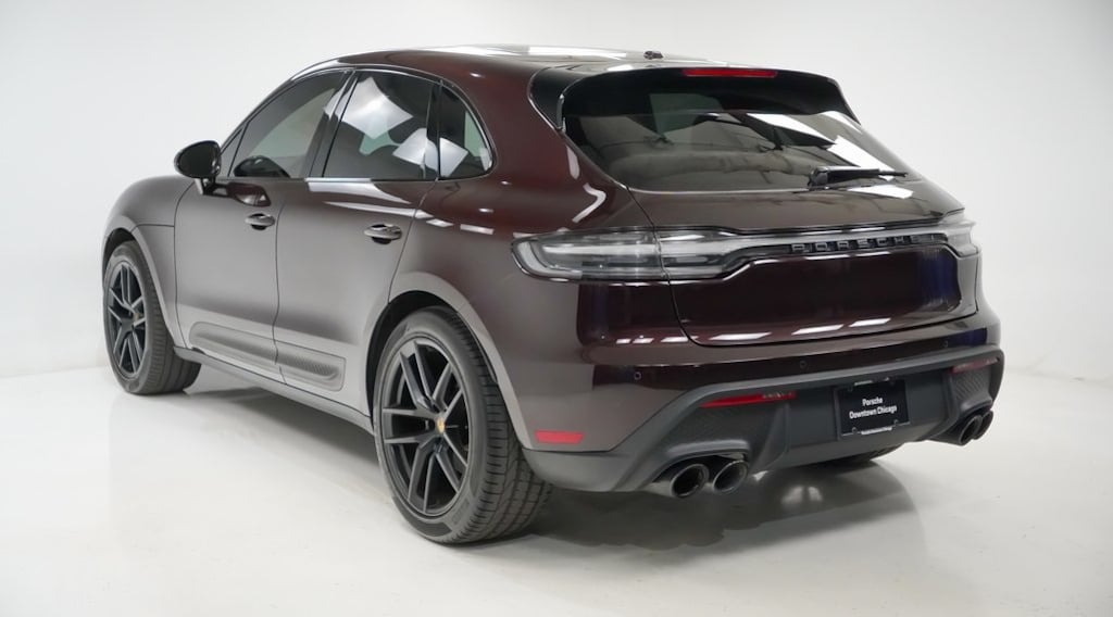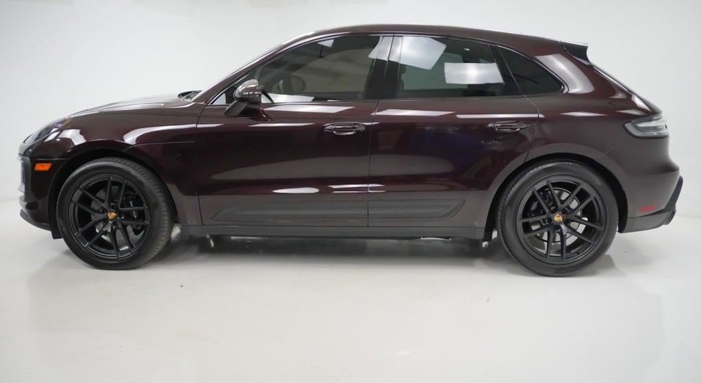 Certified 2024 Porsche Macan S Copper Ruby Metallic over Black/Pebble Grey with Premium Package Plus, Air Suspension, PTV+, and Sport Chrono.