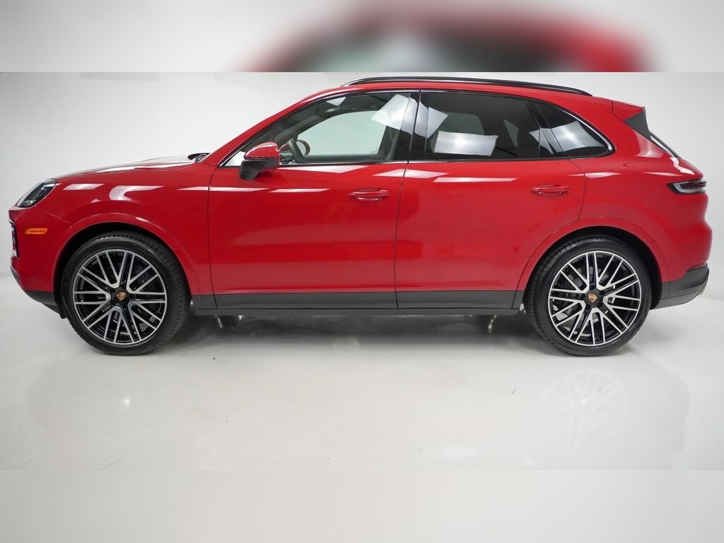 Stunning Carmine Red 2025 Porsche Cayenne with just 9,534 miles and Porsche Approved Certified Pre-Owned status. Loaded with Premium Package Plus, 22" 911 Turbo Design Wheels, HD-Matrix LED headlights, panoramic roof, BOSE surround sound, head-up display, and Porsche InnoDrive with adaptive cruise control. Features 14-way power seats with memory, front ventilated & rear heated seats, 4-zone climate control, and high-gloss black exterior accents. Backed by a 24-month/unlimited-mile Porsche CPO warranty with $0 deductible.