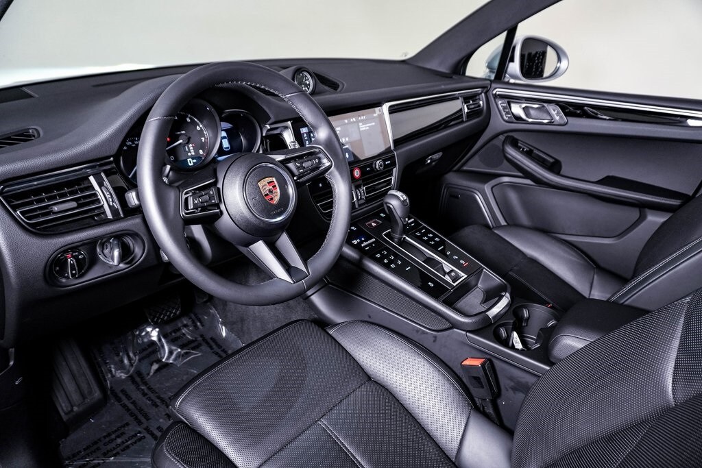 Well equipped with ABS brakes, Active Cruise Control, Alloy wheels, Electronic Stability Control, Emergency communication system, Front dual zone A/C, Heated door mirrors, Heated front seats, Illuminated entry, Low tire pressure warning, Navigation System, Porsche Communication Management, Power Liftgate, Remote keyless entry, Traction control, 4-Wheel Disc Brakes, 8 Speakers, 8-Way Heated Front Comfort Seats, Air Conditioning, AM/FM radio: SiriusXM, Apple CarPlay, Auto-dimming door mirrors, Auto-dimming Rear-View mirror, Automatic temperature control, Brake assist, Bumpers: body-color, Delay-off headlights, Driver door bin, Driver vanity mirror, Dual front impact airbags, Dual front side impact airbags, Exterior Parking Camera Rear, Four wheel independent suspension, Front anti-roll bar, Front Bucket Seats, Front Center Armrest, Front reading lights, Fully automatic headlights, Garage door transmitter: HomeLink, Leather Shift Knob, Leather steering wheel, Memory seat, Occupant sensing airbag, Outside temperature display, Overhead airbag, Overhead console, Panic alarm, Passenger door bin, Passenger vanity mirror, Power door mirrors, Power driver seat, Power passenger seat, Power steering, Power windows, Radio data system, Rain sensing wipers, Rear air conditioning, Rear anti-roll bar, Rear reading lights, Rear seat center armrest, Rear side impact airbag, Rear window defroster, Rear window wiper, Security system, Speed control, Speed-sensing steering, Split folding rear seat, Spoiler, Sport steering wheel, Standard Seat Trim, Steering wheel mounted audio controls, Tachometer, Telescoping steering wheel, Tilt steering wheel, Trip computer, Turn signal indicator mirrors, Variably intermittent wipers, and Wheels: 19" Macan.