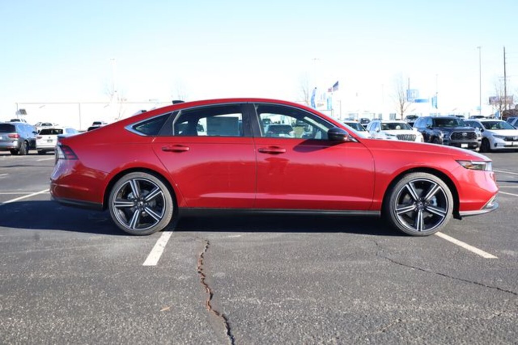 Radiant Red 2025 Honda Accord Hybrid 4D Sedan Sport FWD eCVT 2.0L I4 DOHC 16V