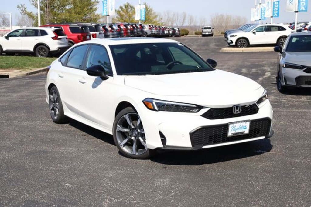 Recent Arrival! Platinum White 2026 Honda Civic Hybrid 4D Sedan Sport Touring FWD eCVT 2.0L 16V DOHC