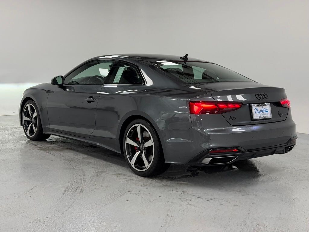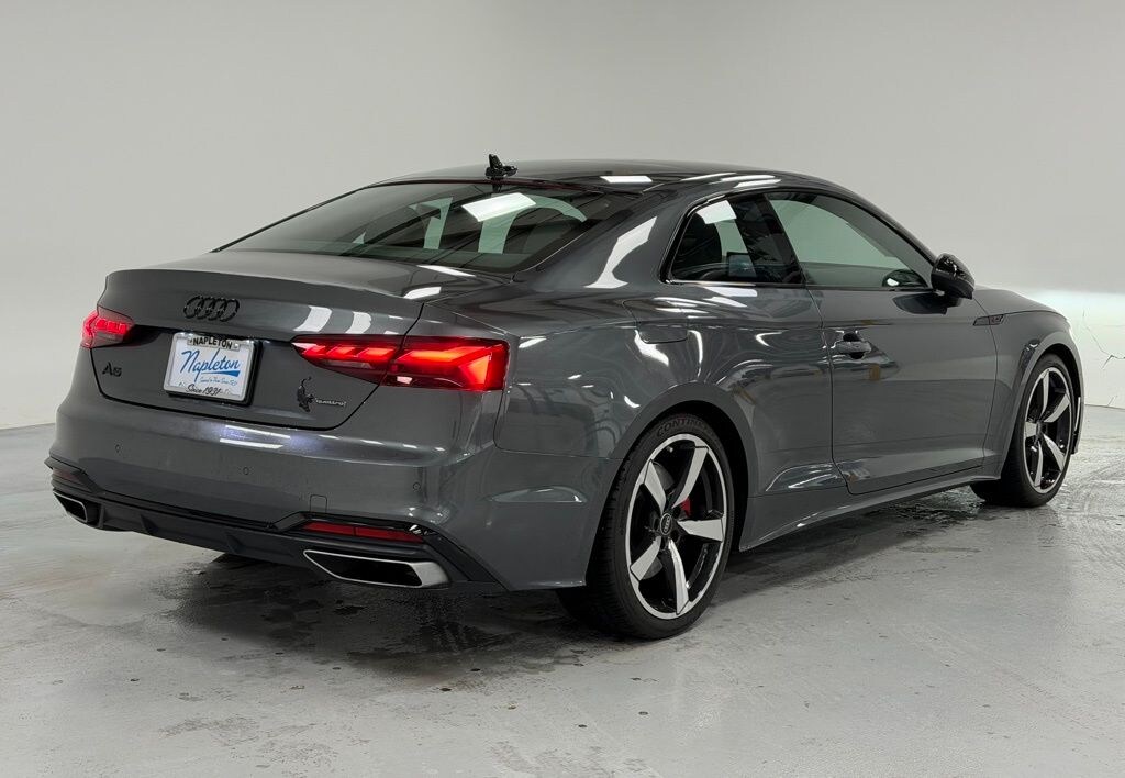 This A5 is well equipped with Black Optic Plus Package (Aluminum Ellipse Dark Inlays, Black Exterior Mirrors, High-Gloss Black Exterior Trim, Matte Black Front Grille, Red Brake Calipers, and Wheels: 19" 5-Arm-Cutter Design Bi-Color Finish), Convenience Package (Alarm System w/Motion Sensors, Audi Advanced Key, Audi Side Assist w/Pre Sense Rear, Auto-Dimming Exterior Mirrors w/Memory, Driver Seat Memory, Heated Steering Wheel, Parking System Plus (Front/Rear Acoustic Sensors), and SiriusXM All Access Service), Premium Plus (Adaptive Cruise Control w/Traffic Jam Assist, Audi Active Lane Assist, Audi Phone Box, Audi Virtual Cockpit Plus, Hands-On Detection Steering Wheel, Leatherette Covered Center Console & Door Armrests, Matrix-Design LED Headlights, Power Folding Exterior Mirrors, and Top View Camera System), S-Line Interior Package (Brushed Aluminum Inlays, Leather/Dinamica Seating Surfaces, and Stainless Steel Pedal Caps (PST)), quattro, Black Leather, 10 Speakers, 4-Wheel Disc Brakes, ABS brakes, Air Conditioning, Alloy wheels, AM/FM radio, Anti-whiplash front head restraints, Auto High-beam Headlights, Auto-di