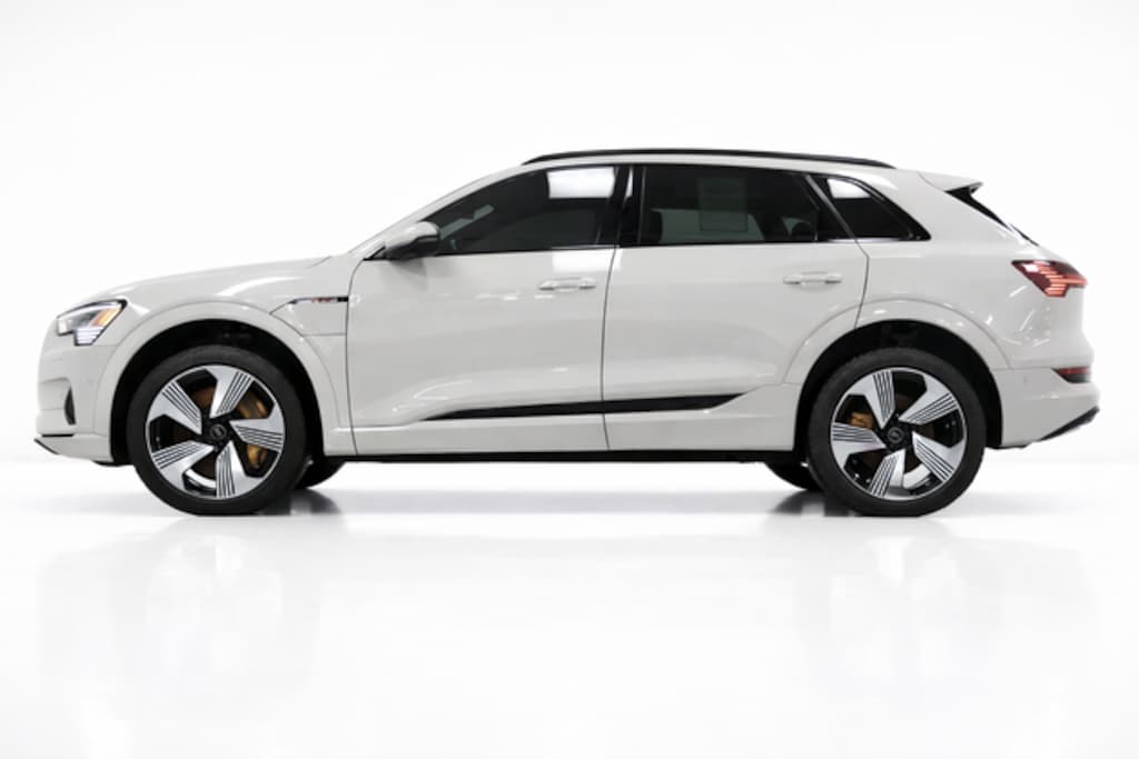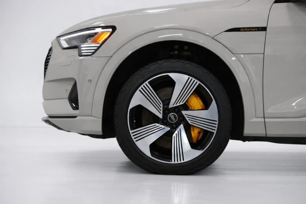 The Black Optic Package further enhances the e-tron's bold and sophisticated appearance, with black exterior accents, 21-inch wheels, and dynamic orange brake calipers. The panoramic moonroof and power liftgate add to the vehicle's impressive list of features, while the Audi Phone Box with Wireless Charging keeps you connected and powered up on the go.
