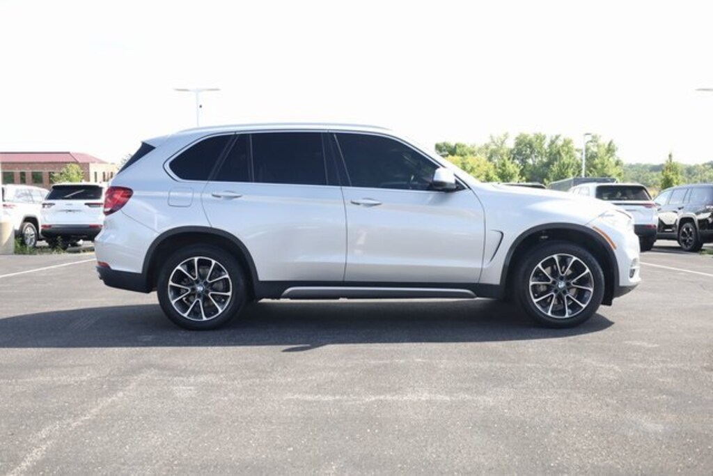 This X5 is well equipped with Premium Package (4-Zone Automatic Climate Control, Comfort Access Keyless Entry, Dakota Leather Upholstery, SiriusXM Satellite Radio w/1 Year All Access, WiFi Hotspot, and Wireless Charging), 10 Speakers, 3.154 Axle Ratio, 4-Wheel Disc Brakes, ABS brakes, Air Conditioning, Alloy wheels, AM/FM radio, Anti-Theft AM/FM Stereo w/CD/MP3, Anti-whiplash front head restraints, Auto tilt-away steering wheel, Auto-dimming door mirrors, Auto-dimming Rear-View mirror, Automatic temperature control, Brake assist, Bumpers: body-color, CD player, Delay-off headlights, Driver door bin, Driver vanity mirror, Dual front impact airbags, Dual front side impact airbags, Electronic Stability Control, Emergency communication system: BMW Assist eCall, Enhanced USB & Bluetooth, Four wheel independent suspension, Front anti-roll bar, Front Bucket Seats, Front Center Armrest, Front dual zone A/C, Front fog lights, Front reading lights, Fully automatic headlights, Garage door transmitter, Genuine wood console insert, Genuine wood dashboard insert, Genuine wood door panel insert, Head restraints memory, Heated door mirrors, Heated Front Seats, Heated front seats, Hi-Fi Sound System, High intensity discharge headlights: Bi-xenon, Illuminated entry, Low tire pressure warning, Lumbar Support, Memory seat, Navigation System, Occupant sensing airbag, Outside temperature display, Overhead airbag, Overhead console, Panic alarm, Passenger door bin, Passenger vanity mirror, Poplar Wood Trim, Power adjustable front head restraints, Power door mirrors, Power driver seat, Power Front Seats, Power moonroof, Power passenger seat, Power steering, Power windows, Radio data system, Rain sensing wipers, Rear anti-roll bar, Rear reading lights, Rear seat center armrest, Rear window defroster, Rear window wiper, Rear-View Camera, Remote keyless entry, Roof rack: rails only, Satin Aluminum Roof Rails, Security system, SensaTec Upholstery, Speed control, Speed-sensing steering, Speed-Sensitive Wipers, Split folding rear seat, Spoiler, Sport steering wheel, Standard Suspension, Steering wheel memory, Steering wheel mounted A/C controls, Steering wheel mounted audio controls, Tachometer, Telescoping steering wheel, Tilt steering wheel, Traction control, Trip computer, Turn signal indicator mirrors, Variably intermittent wipers, Weather band radio, and Wheels: 19" x 9" Lt Alloy Orbit Gray (Style 449).