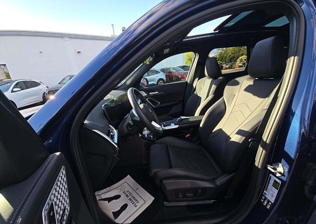 This X1 is well equipped with Premium Package (BMW Digital Key Plus w/UWB, harman/kardon® Logic 7® Digital Surround, Head-Up Display, Live Cockpit Pro, Panoramic Moonroof, Wireless Device Charging, Anti Theft Recorder, Auto-Dimming Interior & Exterior Mirrors, Auto-Dimming Rear-View Mirror, Comfort Access Keyless Entry, Interior Camera, Parking Assistant Plus, Premium Content 1, Surround View w/3D View, and Universal Garage-Door Opener), Apple CarPlay & Android Auto Compatibility, Navigation System, Perforated Veganza Upholstery, Power Liftgate, 3.20 Axle Ratio, 4-Wheel Disc Brakes, 7 Speakers, ABS brakes, Air Conditioning, Alloy wheels, AM/FM Radio, AM/FM radio: SiriusXM with 360L, Apple CarPlay Compatibility, Auto High-beam Headlights, Automatic temperature control, BMW Assist eCall, BMW TeleServices, Brake assist, Bumpers: body-color, Compass, ConnectedDrive Services, Delay-off headlights, Driver door bin, Driver vanity mirror, Dual front impact airbags, Dual front side impact airbags, Electronic Stability Control, Emergency communication system: BMW Assist eCall, Exterior Parking Camera Rear, Four wheel independent suspension, Front anti-roll bar, Front Bucket Seats, Front Center Armrest w/Storage, Front dual zone A/C, Front reading lights, Heated door mirrors, Illuminated entry, Knee airbag, Low tire pressure warning, Memory seat, Navigation, Occupant sensing airbag, Outside temperature display, Overhead airbag, Panic alarm, Passenger door bin, Passenger vanity mirror, Power door mirrors, Power driver seat, Power Front Seats, Power passenger seat, Power steering, Power windows, Radio data system, Rain sensing wipers, Rear anti-roll bar, Rear reading lights, Rear seat center armrest, Rear window defroster, Rear window wiper, Remote keyless entry, Roof rack: xxxxxx, Security system, SiriusXM w/360L & 1 Yr Platinum Plan Subscription, Speed control, Speed-sensing steering, Speed-Sensitive Wipers, Split folding rear seat, Spoiler, Sport steering wheel, Steering wheel mounted audio controls, Tachometer, Telescoping steering wheel, Tilt steering wheel, Traction control, Trip computer, Turn signal indicator mirrors, Variably intermittent wipers, Wheels: 18" x 7.5" V Spoke Bi-Color, and Widescreen Display.