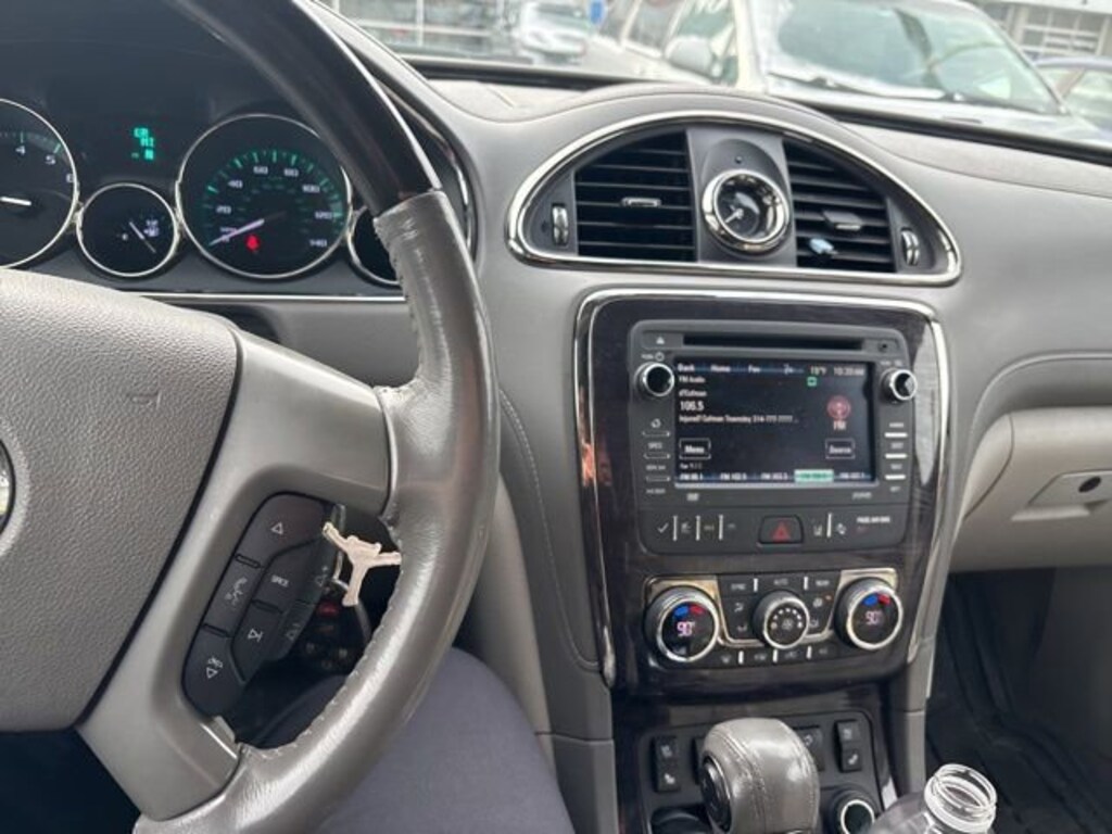 This Enclave is well equipped with 4500lbs Trailering Package (Heavy-Duty Cooling System and Trailer Hitch), Experience Buick Package (Power Tilt-Sliding Moonroof and Wheels: 20" Bright-Machined Aluminum w/Blade Silver Pockets), Preferred Equipment Group 1SN (Bose Sound System, Forward Collision Alert & Lane Departure Warning, and NavTraffic), Premium Package (Articulating Headlights, Heated & Cooled Driver & Front Passenger Seats, Power Tilt & Telescopic Steering Column, and Power-Folding Heated Body-Color Outside Mirrors), 10 Speakers, 120-Volt 3-Prong Household-Style Power Outlet, 3.16 Axle Ratio, 3rd row seats: split-bench, 4-Wheel Disc Brakes, 7-Passenger Seating, ABS brakes, Air Conditioning, Alloy wheels, AM/FM radio: SiriusXM, Auto tilt-away steering wheel, Auto-dimming door mirrors, Auto-dimming Rear-View mirror, Automatic temperature control, Bose Advanced 10-Speaker Audio System, Bose Performance-Enhanced 10-Speaker System, Brake assist, Bumpers: body-color, CD player, Compass, Delay-off headlights, Driver door bin, Driver vanity mirror, Dual front impact airbags, Dual front side impact airbags, Electronic Stability Control, Emergency communication system: OnStar Guidance, Exterior Parking Camera Rear, Four wheel independent suspension, Front anti-roll bar, Front Bucket Seats, Front Center Armrest w/Storage, Front dual zone A/C, Front License Plate Mounting Bracket, Front reading lights, Fully automatic headlights, Garage door transmitter, Heated door mirrors, Heated front seats, Heated steering wheel, High intensity discharge headlights: Bi-Xenon, Illuminated entry, Leather steering wheel, Low tire pressure warning, Memory seat, Navigation System, Occupant sensing airbag, Outside temperature display, Overhead airbag, Panic alarm, Passenger door bin, Passenger vanity mirror, Perforated Leather-Appointed Seat Trim, Power door mirrors, Power driver seat, Power Liftgate, Power passenger seat, Power steering, Power windows, Radio data system, Radio: Color Touch AM/FM/CD/DVD/Nav w/IntelliLink, Radio: Color Touch AM/FM/CD/Nav w/IntelliLink, Rear air conditioning, Rear anti-roll bar, Rear audio controls, Rear Audio System Controls, Rear Parking Sensors, Rear reading lights, Rear Seat Entertainment System, Rear window defroster, Rear window wiper, Remote keyless entry, Roof rack: rails only, Security system, Speed control, Speed-sensing steering, Spoiler, Steering wheel memory, Steering wheel mounted audio controls, Tachometer, Telescoping steering wheel, Tilt steering wheel, Traction control, Trip computer, Turn signal indicator mirrors, Variably intermittent wipers, Ventilated front seats, Voltmeter, and Wheels: 19" Chrome-Clad Cast Aluminum.