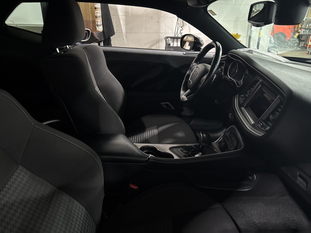 This Challenger is well equipped with Quick Order Package 2EL, 4-Wheel Disc Brakes, 6 Speakers, ABS brakes, Air Conditioning, Alloy wheels, AM/FM radio, Anti-whiplash front head restraints, Apple CarPlay, Apple CarPlay/Android Auto, Auto-dimming Rear-View mirror, Automatic temperature control, Brake assist, Bumpers: body-color, Compass, Compass Gauge, Delay-off headlights, Driver door bin, Driver vanity mirror, Dual front impact airbags, Dual front side impact airbags, Electronic Stability Control, For More Info, Call 800-643-2112, Four wheel independent suspension, Front anti-roll bar, Front Bucket Seats, Front Center Armrest, Front dual zone A/C, Front fog lights, Front License Plate Bracket, Front reading lights, Fully automatic headlights, Garage door transmitter, Google Android Auto, GPS Antenna Input, Heated door mirrors, Houndstooth Cloth Performance Seats, Illuminated entry, Integrated Center Stack Radio, Integrated Voice Command w/Bluetooth, Leather Shift Knob, Low tire pressure warning, Media Hub (2 USB, AUX), Outside temperature display, Overhead airbag, Overhead console, Panic alarm, ParkView Rear Back-Up Camera, Passenger door bin, Passenger vanity mirror, Power door mirrors, Power driver seat, Power steering, Power windows, Radio data system, Radio: Uconnect 4 w/7" Display, Rear anti-roll bar, Rear reading lights, Rear seat center armrest, Rear window defroster, Remote keyless entry, Security system, SiriusXM Radio Service, SiriusXM Satellite Radio, Speed control, Speed-sensing steering, Split folding rear seat, Spoiler, Sport steering wheel, Steering wheel mounted audio controls, Tachometer, Telescoping steering wheel, Tilt steering wheel, Traction control, Trip computer, USB Host Flip, Variably intermittent wipers, and Wheels: 20" x 8.0" Satin Carbon Painted.