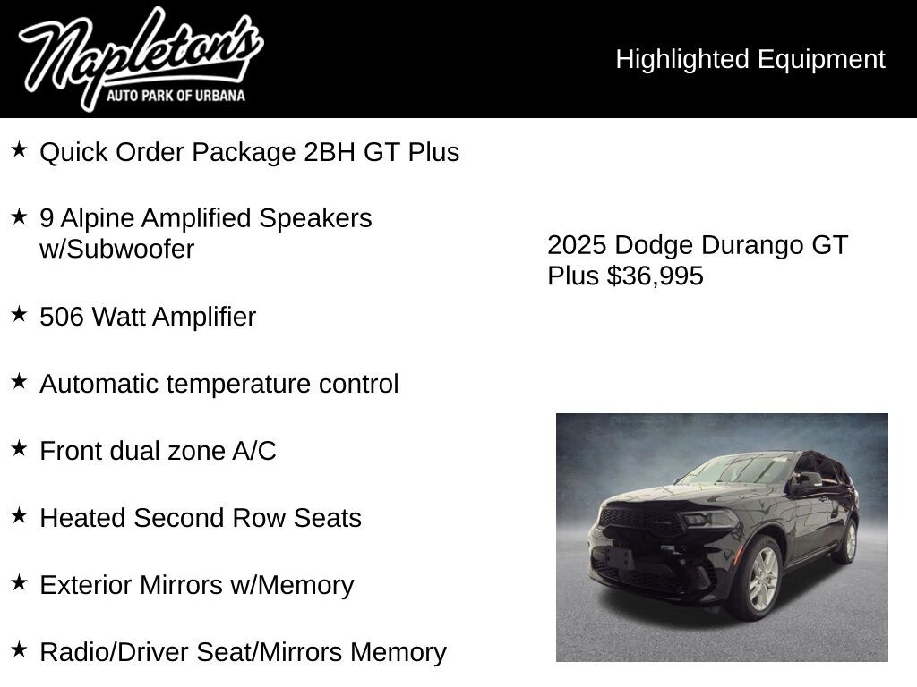 Discover the perfect balance of power, capability, and luxury in the 2025 Dodge Durango GT Plus. This SUV is the ideal choice for those who demand more from their daily driving and occasional adventures. Experience the difference for yourself by scheduling a test drive at our showroom. We're confident you'll be impressed by the Durango's exceptional performance and refined amenities.