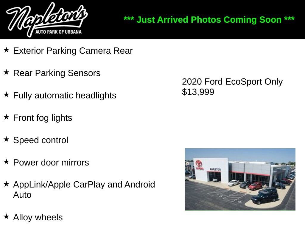 Get used cars in Chicago at UsedCarsChicago.com. We have over 1000 vehicles in stock and ready to drive! We are Chicago's used car guide. This 2020 Ford EcoSport is only one of our massive inventory of used cars in the Chicago area.- We're here to help: 217-367-1222