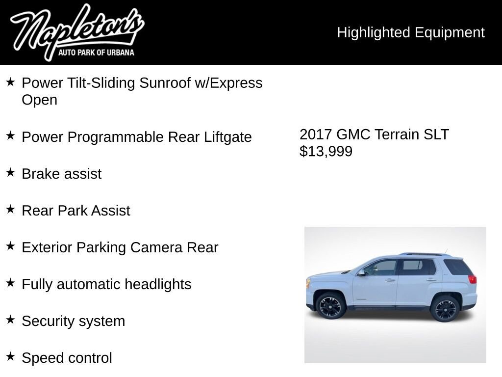 Get used cars in Chicago at UsedCarsChicago.com. We have over 1000 vehicles in stock and ready to drive! We are Chicago's used car guide. This 2017 GMC Terrain is only one of our massive inventory of used cars in the Chicago area.- We're here to help: 217-367-1222