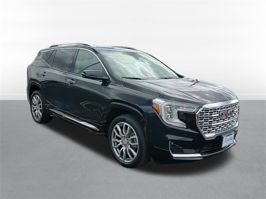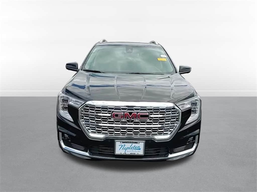 This Terrain is well equipped with Comfort Package (Ventilated Driver Seat, Ventilated Front Passenger Seat, and Heated Rear Outboard Seating Positions), Denali Premium Package, License Plate Front Mounting Package, Preferred Equipment Group 5SA, Tech Package (Adaptive Cruise Control, Automatic Parking Assist, and HD Surround Vision), Heads-Up Display, Heated front seats, Heated steering wheel, Lane Departure Warning System, Power Liftgate, Skyscape Power Sunroof w/Power Sunscreen, Steering wheel mounted audio controls, Wireless Apple CarPlay/Wireless Android Auto, 2 USB Data Ports, 2 USB Data Ports w/SD Card Reader, 3.47 Axle Ratio, 4-Wheel Disc Brakes, 6-Way Power Front Passenger Seat, 7 Speakers, 8-Way Power Driver Seat Adjuster, ABS brakes, Air Conditioning, Alloy wheels, AM/FM radio: SiriusXM, Auto High-beam Headlights, Auto-dimming Rear-View mirror, Automatic temperature control, Bluetooth® For Phone, Brake assist, Bumpers: body-color, Compass, Delay-off headlights, Driver & Front Passenger Heated Seats, Driver door bin, Driver vanity mirror, Dual front impact airbags, Dual front side impact airbags, Electronic Stability Control, Emergency communication system, Four wheel independent suspension, Front anti-roll bar, Front Bucket Seats, Front Center Armrest, Front dual zone A/C, Front fog lights, Front Passenger 2-Way Power Lumbar, Front reading lights, Fully automatic headlights, Garage door transmitter, Heated door mirrors, Illuminated entry, Low tire pressure warning, Memory seat, Navigation system: GMC Connected Navigation, Occupant sensing airbag, Outside temperature display, Overhead airbag, Overhead console, Panic alarm, Passenger door bin, Passenger vanity mirror, Perforated Leather-Appointed Seat Trim, Power door mirrors, Power Driver Lumbar Control, Power driver seat, Power passenger seat, Power steering, Power windows, Premium 7-Speaker Bose Sound System w/Amplifier, Radio data system, Radio: GMC Infotainment Audio System w/Navigation, Rear anti-roll bar, Rear seat center armrest, Rear window defroster, Rear window wiper, Remote keyless entry, Roof rack: rails only, Security system, SiriusXM Radio, Speed control, Speed-sensing steering, Split folding rear seat, Spoiler, Tachometer, Telescoping steering wheel, Tilt steering wheel, Traction control, Trip computer, Turn signal indicator mirrors, Variably intermittent wipers, and Wheels: 19" x 7.5" Bright Machined Aluminum.