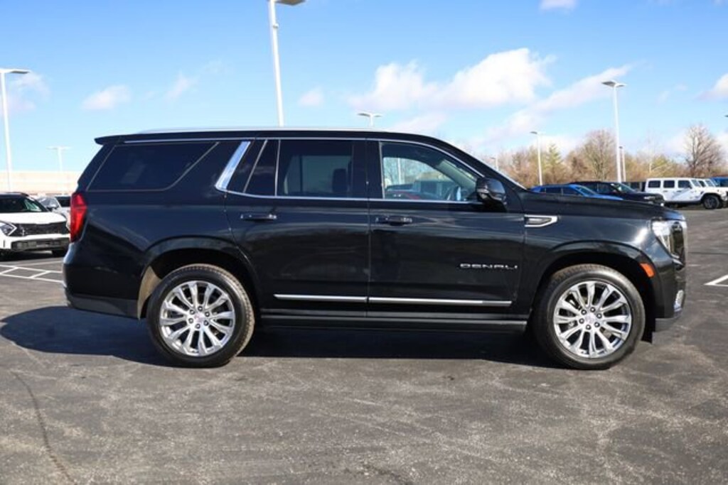 This Yukon is well equipped with Preferred Equipment Group 5SA (15" Diagonal Multi-Color Head-Up Display, 2 Presets For Outside Rearview Mirrors, 3 Years of GMC Connected Services, 3 Years of OnStar Safety & Security, 3rd Row 60/40 Power-Folding Split-Bench Seat, Bose 14-Speaker Surround w/CenterPoint, Bright Front & Rear Door Sill Plates, Chrome Door Handles w/Body-Color Strip, Dual Exhaust System, Enhanced Automatic Emergency Braking, Floor Console, Galvano Bodyside Moldings, Hands-Free Power Programmable Rear Liftgate, HD Surround Vision, Heated & Ventilated Driver & Front Passenger Seats, Heated 2nd Row Outboard Position Seats, Heated Driver & Front Passenger Seats, Heated Steering Wheel, Hill Descent Control, Inside Rear-View Auto-Dimming Mirror, Outside Heated Power-Adjustable Mirrors, Power Release 2nd Row Bucket Seats, Power Tilt & Telescopic Steering Column, Rear Pedestrian Alert, Safety Alert Seat, Universal Home Remote, and Wireless Charging), 14 Speakers, 3 Years of OnStar Safety & Security (DISC), 3.23 Rear Axle Ratio, 3rd row seats: split-bench, 4-Wheel Disc Brakes, ABS brakes, Adaptive Cruise Control, Adaptive suspension, Air Conditioning, Alloy wheels, AM/FM radio: SiriusXM with 360L, AM/FM Stereo, Apple CarPlay/Android Auto, Auto High-beam Headlights, Auto-dimming door mirrors, Auto-dimming Rear-View mirror, Auto-leveling suspension, Automatic Emergency Braking, Automatic temperature control, Bodyside moldings, Brake assist, Bumpers: body-color, Compass, Delay-off headlights, Deleted 3 Years of OnStar Safety & Security, Driver door bin, Driver vanity mirror, Dual front impact airbags, Dual front side impact airbags, Dual-Pane Panoramic Power Sunroof, Electronic Stability Control, Emergency communication system: OnStar and GMC connected services capable, Following Distance Indicator, Forward Collision Alert, Four wheel independent suspension, Front & Rear Park Assist, Front anti-roll bar, Front Bucket Seats, Front Center Armrest, Front dual zone A/C, Front fog lights, Front Pedestrian Braking, Front reading lights, Fully automatic headlights, Garage door transmitter, Heads-Up Display, Heated door mirrors, Heated front seats, Heated rear seats, Heated steering wheel, Illuminated entry, IntelliBeam Automatic High Beam On/Off, Lane Change Alert w/Side Blind Zone Alert, Lane Keep Assist w/Lane Departure Warning, Low tire pressure warning, Magnetic Ride Control Suspension, Memory seat, Navigation System, Occupant sensing airbag, Outside temperature display, Overhead airbag, Overhead console, Panic alarm, Passenger door bin, Passenger vanity mirror, Perforated Leather Seating Surfaces, Power door mirrors, Power driver seat, Power Liftgate, Power passenger seat, Power steering, Power windows, Power-Retractable Assist Steps, Rain sensing wipers, Rear air conditioning, Rear anti-roll bar, Rear Cross Traffic Alert, Rear reading lights, Rear window defroster, Rear window wiper, Remote keyless entry, Roof rack: rails only, Security system, SiriusXM w/360L, Speed control, Speed-sensing steering, Split folding rear seat, Spoiler, Steering wheel memory, Steering wheel mounted audio controls, Tachometer, Telescoping steering wheel, Tilt steering wheel, Traction control, Trip computer, Turn signal indicator mirrors, Variably intermittent wipers, Ventilated front seats, Voltmeter, Wheel Locks (Set of 4) (LPO), Wheels: 20" x 9" 6-Spoke Polished Aluminum, and Wheels: 22" x 9" Bright Machined Aluminum.