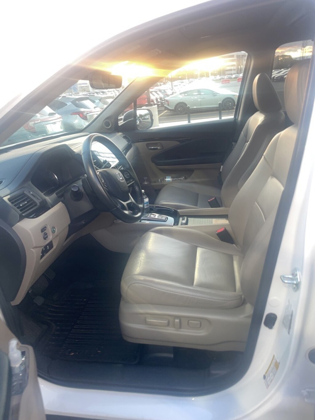 This Pilot is well equipped with AWD, 10 Speakers, 3rd row seats: split-bench, 4-Wheel Disc Brakes, 4.33 Axle Ratio, A/V remote: CabinControl, ABS brakes, Air Conditioning, Alloy wheels, AM/FM radio: SiriusXM, Apple CarPlay/Android Auto, Auto High-beam Headlights, Auto-dimming Rear-View mirror, Automatic temperature control, Blind Spot Information (BSI) System warning, Brake assist, Bumpers: body-color, Compass, Delay-off headlights, Driver door bin, Driver vanity mirror, Dual front impact airbags, Dual front side impact airbags, Electronic Stability Control, Emergency communication system: HondaLink, Exterior Parking Camera Rear, Forward collision: Collision Mitigation Braking System (CMBS) + FCW mitigation, Four wheel independent suspension, Front anti-roll bar, Front Bucket Seats, Front Center Armrest, Front dual zone A/C, Front fog lights, Front reading lights, Fully automatic headlights, Garage door transmitter: HomeLink, Headphones, Heated door mirrors, Heated Front Bucket Seats, Heated front seats, Heated rear seats, Illuminated entry, Lane departure: Lane Keeping Assist System (LKAS) active, Leather Seat Trim, Low tire pressure warning, Memory seat, Navigation system: Honda Satellite-Linked Navigation System, Occupant sensing airbag, Outside temperature display, Overhead airbag, Overhead console, Panic alarm, Passenger door bin, Passenger vanity mirror, Power door mirrors, Power driver seat, Power Liftgate, Power moonroof, Power passenger seat, Power steering, Power windows, Radio data system, Radio: 590-Watt Premium Audio System, Rear air conditioning, Rear anti-roll bar, Rear audio controls, Rear reading lights, Rear window defroster, Rear window wiper, Reclining 3rd row seat, Remote keyless entry, Roof rack: rails only, Security system, Speed control, Speed-sensing steering, Speed-Sensitive Wipers, Split folding rear seat, Spoiler, Steering wheel mounted audio controls, Tachometer, Telescoping steering wheel, Tilt steering wheel, Traction control, Trip computer, Turn signal indicator mirrors, Variably intermittent wipers, and Wheels: 20" Machine-Finished Alloy.