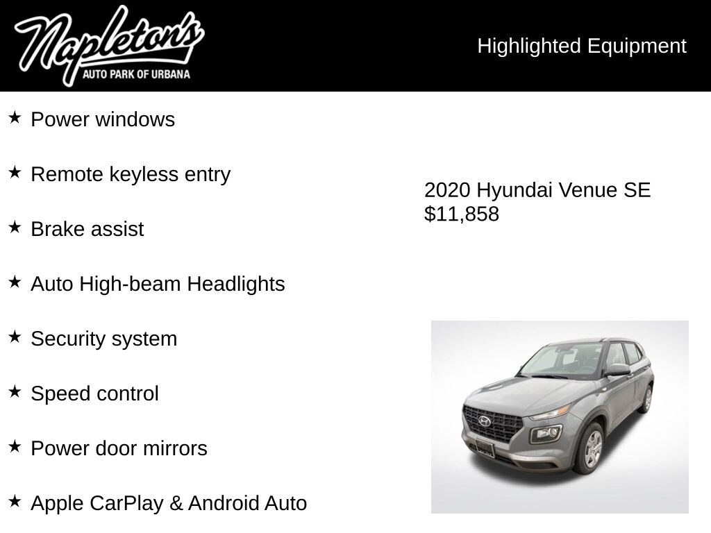 With its sleek design, impressive efficiency, and comprehensive suite of features, the 2020 Hyundai Venue SE is a standout in the compact crossover segment. Experience the difference for yourself and schedule a test drive today. We're confident you'll be impressed by the Venue SE's capabilities and how it can enhance your driving experience.