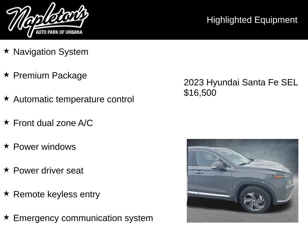 Discover the perfect balance of style, capability, and advanced technology with the 2023 Hyundai Santa Fe SEL Premium Package. This exceptional SUV is the ideal companion for your on-the-go lifestyle, offering a refined and versatile driving experience.