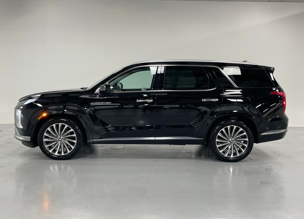 This Palisade is well equipped with Option Group 01, 12 Speakers, 3rd row seats: split-bench, 4-Wheel Disc Brakes, ABS brakes, Air Conditioning, Alloy wheels, AM/FM radio: SiriusXM, Apple CarPlay & Android Auto, Auto High-beam Headlights, Auto-dimming door mirrors, Auto-dimming Rear-View mirror, Auto-leveling suspension, Automatic temperature control, Brake assist, Bumpers: body-color, Cargo Net, Cargo Tray, Carpeted Floor Mats, Compass, Delay-off headlights, Driver door bin, Driver vanity mirror, Dual front impact airbags, Dual front side impact airbags, Electronic Stability Control, Emergency communication system, Exterior Parking Camera Rear, First Aid Kit, Four wheel independent suspension, Front anti-roll bar, Front Bucket Seats, Front Center Armrest, Front dual zone A/C, Front reading lights, Fully automatic headlights, Garage door transmitter: HomeLink, harman/kardon® Speakers, Heads-Up Display, Heated & Ventilated Front Bucket Seats, Heated door mirrors, Heated front seats, Heated rear seats, Heated steering wheel, Illuminated entry, Knee airbag, Leather steering wheel, Low tire pressure warning, Memory seat, Navigation System, Occupant sensing airbag, Outside temperature display, Overhead airbag, Overhead console, Panic alarm, Passenger door bin, Passenger vanity mirror, Power door mirrors, Power driver seat, Power Liftgate, Power moonroof, Power passenger seat, Power steering, Power windows, Premium Nappa Leather Seat Trim, Radio data system, Radio: AM/FM/MP3 Premium Audio System, Rain sensing wipers, Rear air conditioning, Rear anti-roll bar, Rear audio controls, Rear reading lights, Rear side impact airbag, Rear window defroster, Rear window wiper, Reclining 3rd row seat, Roadside Assistance Kit, Security system, Speed control, Speed-sensing steering, Split foldi