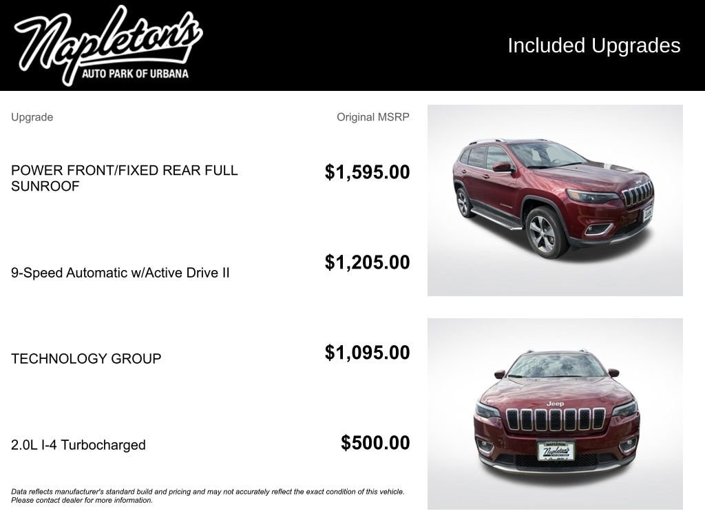We invite you to visit our showroom and experience the exceptional quality and value of this 2019 Jeep Cherokee Limited w/ Technology Group for yourself. Our knowledgeable sales team is here to answer any questions you may have and help you find the perfect vehicle to meet your needs. Don't miss the opportunity to make this impressive SUV your own.