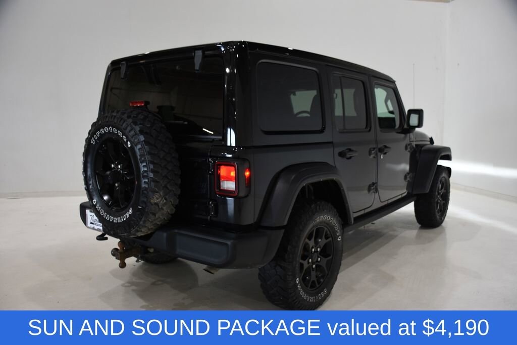 Don't miss your chance to make this exceptional 2021 Jeep Wrangler Unlimited Willys Sun and Sound Package your own. Visit our showroom today and let us help you experience the thrill of driving this remarkable vehicle.