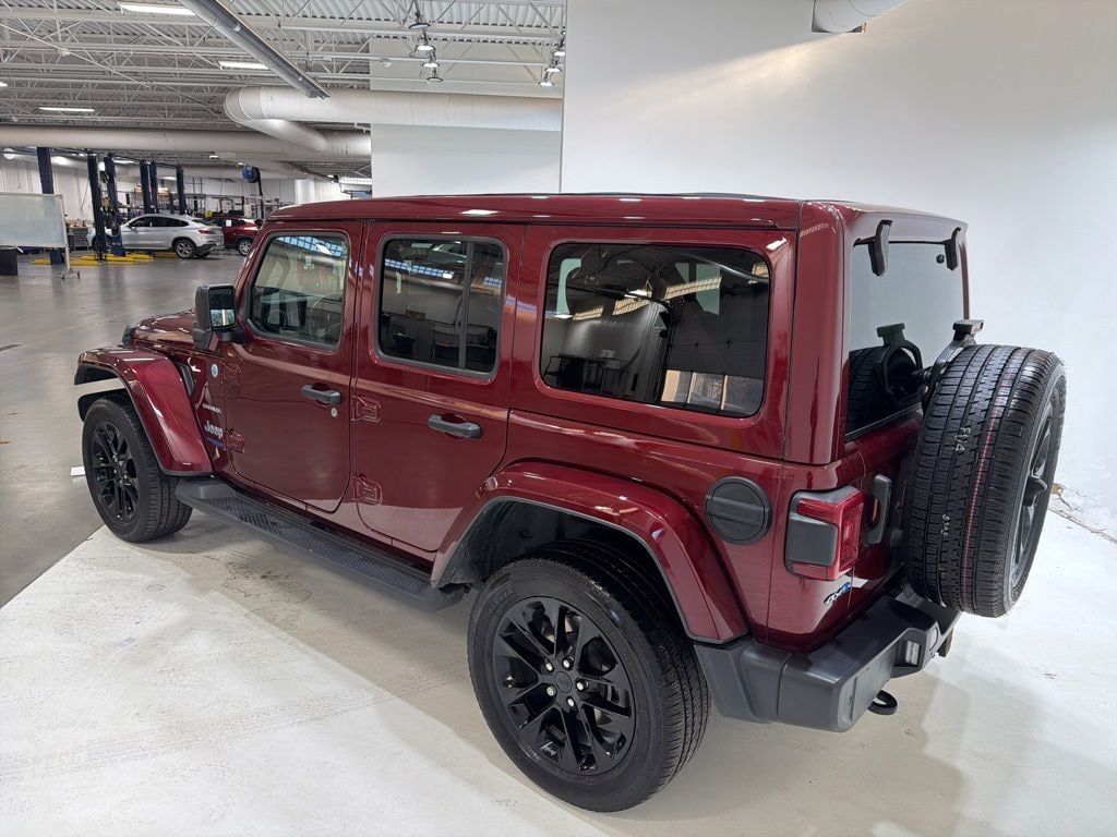 This Wrangler is well equipped with Quick Order Package 29P, Wrangler Unlimited Sahara 4xe, 4D Sport Utility, 2.0L I4 DOHC, 8-Speed Automatic, 4WD, Snazzberry Pearlcoat, Black Leather, ABS brakes, Alloy wheels, Compass, Electronic Stability Control, Front dual zone A/C, Heated door mirrors, Illuminated entry, Low tire pressure warning, Navigation System, ParkView Rear Back-Up Camera, Passenger door bin, Power Top Quarter Window Storage Bag, Remote keyless entry, Remote Proximity Keyless Entry, Removable Rear Quarter Windows, Sky 1-Touch Power Top, Traction control, 3.73 Rear Axle Ratio, 4-Wheel Disc Brakes, 9 Speakers, Air Conditioning, AM/FM radio, Apple CarPlay/Android Auto, Auto-dimming Rear-View mirror, Automatic temperature control, Brake assist, Delay-off headlights, Driver door bin, Driver vanity mirror, Dual front impact airbags, Dual front side impact airbags, Emergency communication system: SiriusXM Guardian, Front anti-roll bar, Front Bucket Seats, Front Center Armrest w/Storage, Front fog lights, Front reading lights, Fully automatic headlights, Garage door transmitter, Integrated roll-over protection, Leather Shift Knob, Leather steering wheel, Leather Trimmed Seats w/Sahara Logo, Leather Wrapped Park Brake Handle, Occupant sensing airbag, Outside temperature display, Panic alarm, Passenger vanity mirror, Power door mirrors, Power steering, Power windows, Radio data system, Radio: Uconnect 4C Nav w/8.4" Display, Rear anti-roll bar, Rear reading lights, Rear seat center armrest, Security system, Speed control, Split folding rear seat, Sport Suspension, Steering wheel mounted audio controls, Tachometer, Telescoping steering wheel, Tilt steering wheel, Trip computer, Variably intermittent wipers, Voltmeter, and Wheels: 20" x 8" Fully Painted Aluminum.