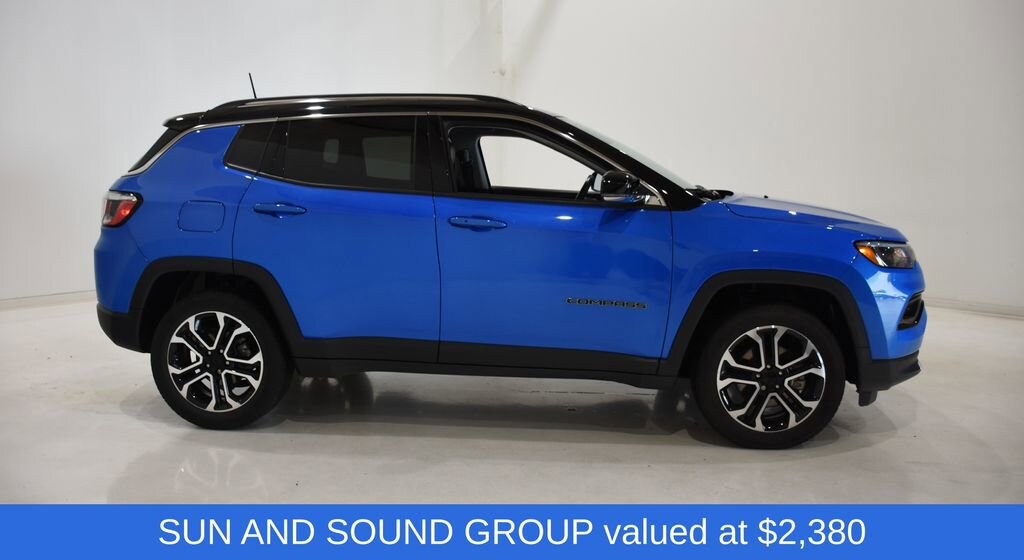 This 2022 Jeep Compass Limited Sun and Sound Group is a true gem that's waiting to elevate your driving experience. With its stunning Laser Blue Pearlcoat exterior and a wealth of premium features, this Compass is poised to exceed your expectations.