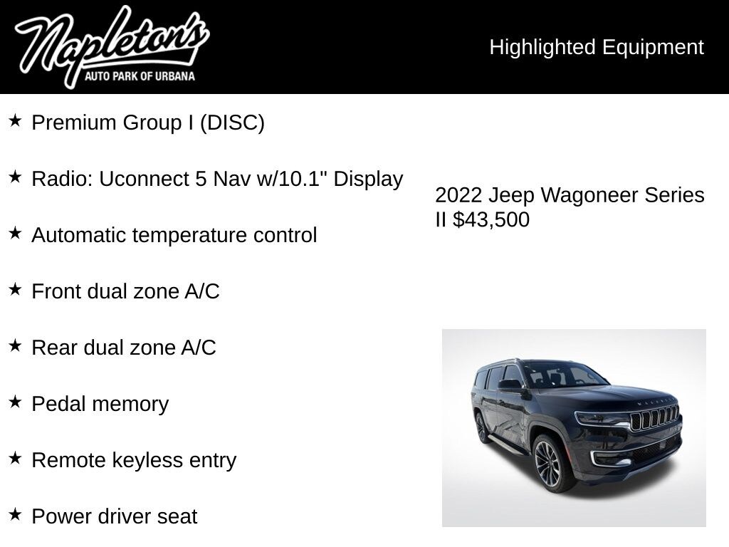 Elevate your daily commute and weekend adventures with the 2022 Jeep Wagoneer Series II Premium Group I. This SUV's impressive capabilities, luxurious amenities, and striking appearance make it a true standout in its class. Schedule a test drive today and discover the exceptional value and performance this Wagoneer has to offer.