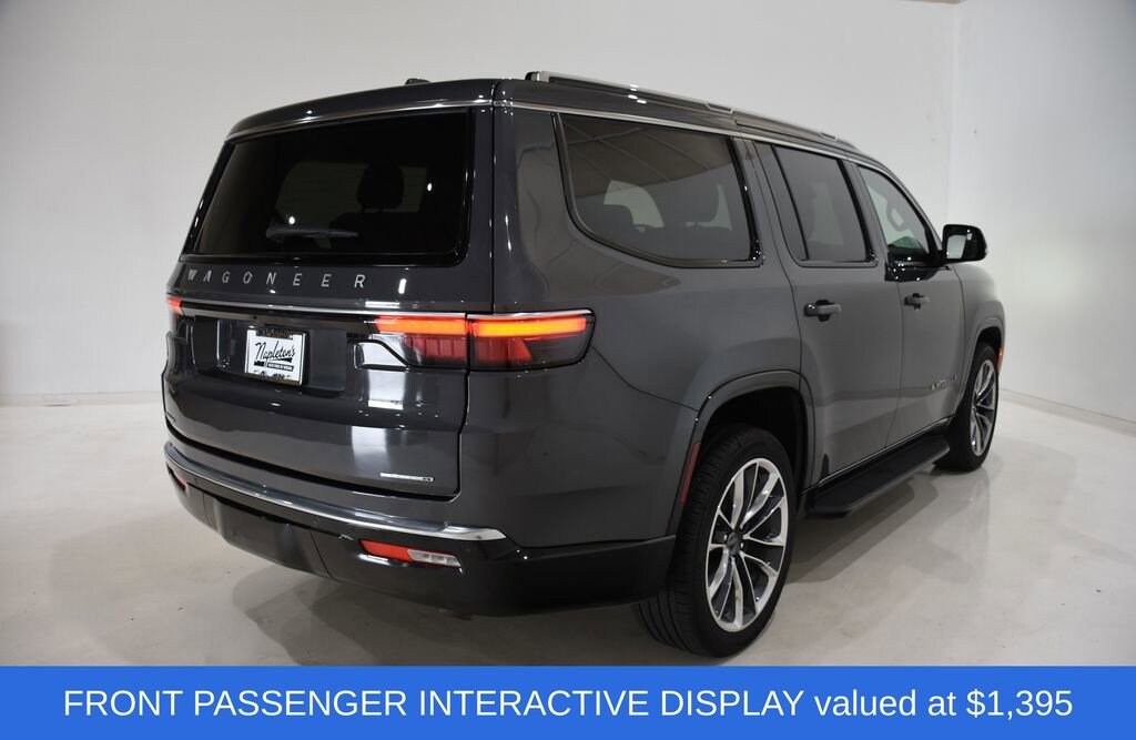 Beyond the impressive performance, this Wagoneer is packed with cutting-edge technology and convenience features. The Uconnect 5 infotainment system with a large 10.1" display keeps you connected and entertained, while the Front Passenger Interactive Display allows your co-pilot to join in the fun. The premium sound system and advanced safety features, like Adaptive Cruise Control and Blind Spot Monitoring, provide a truly elevated driving experience.