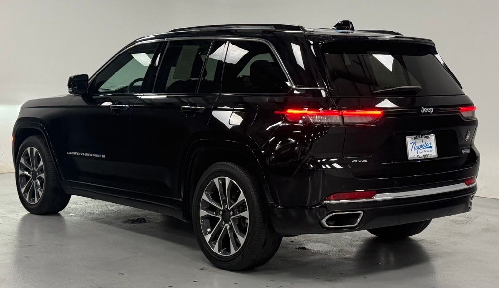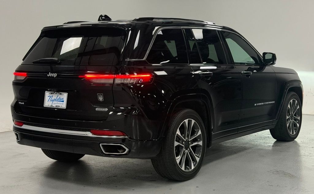 This Grand Cherokee is well equipped with Quick Order Package 22N, 4WD, Navigation System, 10 Speakers, 3.45 Rear Axle Ratio, 4-Wheel Disc Brakes, ABS brakes, Active Noise Control System, Adaptive suspension, Air Conditioning, Alloy wheels, AM/FM radio: SiriusXM with 360L, Anti-whiplash front head restraints, Audio memory, Auto High-beam Headlights, Auto-dimming door mirrors, Auto-dimming Rear-View mirror, Auto-leveling suspension, Automatic temperature control, Auxiliary Battery, Brake assist, Bumpers: body-color, Compass, Delay-off headlights, Driver door bin, Driver vanity mirror, Dual front impact airbags, Dual front side impact airbags, Electronic Stability Control, Emergency communication system, Four wheel independent suspension, Front anti-roll bar, Front Bucket Seats, Front Center Armrest w/Storage, Front dual zone A/C, Front fog lights, Front License Plate Bracket, Front reading lights, Fully automatic headlights, Garage door transmitter, Heated door mirrors, Heated front seats, Heated rear seats, Heated steering wheel, Illuminated entry, Knee airbag, Low tire pressure warning, Memory seat, Nappa Leather Seats, Normal Duty Suspension, Occupant sensing airbag, Outside temperature display, Overhead airbag, Overhead console, Panic alarm, Passenger door bin, Passenger vanity mirror, Power door mirrors, Power driver seat, Power Liftgate, Power moonroof, Power passenger seat, Power steering, Power windows, Radio data system, Radio: Uconnect 5 Nav w/10.1" Display, Rain sensing wipers, Rear anti-roll bar, Rear reading lights, Rear seat center armrest, Rear window defroster, Rear window wiper, Remote keyless entry, Security system, Speed control, Speed-Sensitive Wipers, Split folding rear seat, Spoiler, Steering wheel memory, Steering wheel mounted audio controls, Tachometer, Telescoping steering wheel, Tilt steering wheel, Traction control, Trip computer, Turn signal indicator mirrors, Variably intermittent wipers, Ventilated front seats, Voltmeter, and Wheels: 20" x 8.5" Machined Face Aluminum.