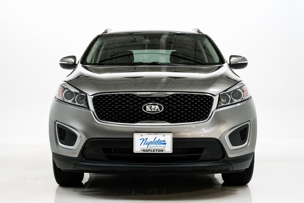 This Sorento is well equipped with LX Cool & Connected Package (Dual Zone Automatic Climate Control and Radio: AM/FM/CD/MP3/SiriusXM w/UVO eServices), CD player, 3.51 Axle Ratio, 4-Wheel Disc Brakes, 6 Speakers, ABS brakes, Air Conditioning, Alloy wheels, AM/FM radio: SiriusXM, Anti-whiplash front head restraints, Brake assist, Bumpers: body-color, Cargo Net, Carpet Floor Mats (5 Seat), Delay-off headlights, Driver door bin, Driver vanity mirror, Dual front impact airbags, Dual front side impact airbags, Electronic Stability Control, Exterior Parking Camera Rear, Four wheel independent suspension, Front anti-roll bar, Front Bucket Seats, Front Center Armrest, Front reading lights, Fully automatic headlights, Heated door mirrors, Illuminated entry, Low tire pressure warning, Mudguards: front & rear, Occupant sensing airbag, Outside temperature display, Overhead airbag, Overhead console, Panic alarm, Passenger door bin, Passenger vanity mirror, Power door mirrors, Power steering, Power windows, Radio: AM/FM/CD/MP3/SiriusXM, Rear anti-roll bar, Rear seat center armrest, Rear window defroster, Rear window wiper, Remote keyless entry, Roof rack: rails only, Security system, Speed control, Speed-sensing steering, Split folding rear seat, Spoiler, Steering wheel mounted audio controls, Tachometer, Telescoping steering wheel, Tilt steering wheel, Traction control, Trip computer, Turn signal indicator mirrors, Variably intermittent wipers, Wheels: 17" x 7.0 Alloy, and YES Essentials Cloth Seat Trim.