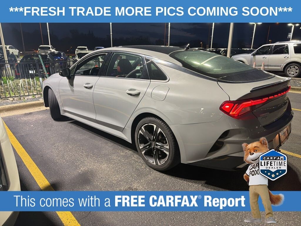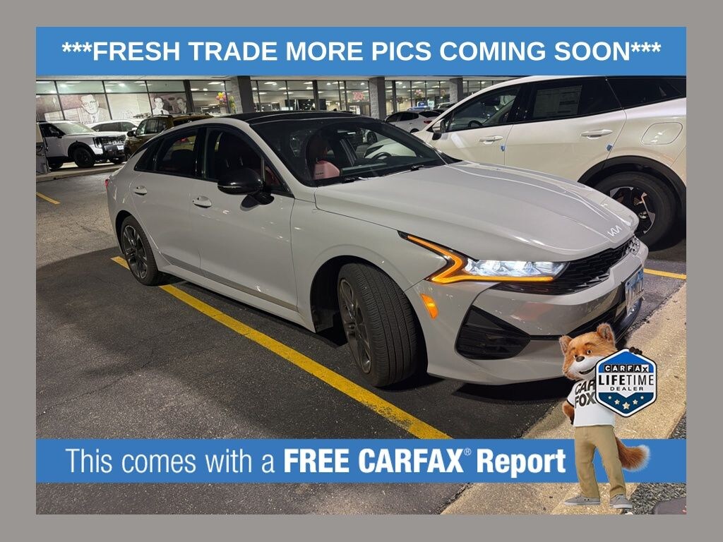 This K5 is well equipped with GT-Line AWD Premium Package (Heated Steering Wheel, LED Interior Lighting, LED Projection Headlights, Navigation-Based Smart Cruise Control - Curve, Panoramic Sunroof, and Smart Cruise Control w/Stop & Go), GT-Line Red Interior Package, 4-Wheel Disc Brakes, 6 Speakers, ABS brakes, Air Conditioning, Alloy wheels, AM/FM radio: SiriusXM, Apple CarPlay & Android Auto, Auto High-beam Headlights, Automatic temperature control, Brake assist, Bumpers: body-color, Carpeted Floor Mats, Cloth/Leatherette Seat Trim, Delay-off headlights, Driver door bin, Driver vanity mirror, Dual front impact airbags, Dual front side impact airbags, Electronic Stability Control, Four wheel independent suspension, Front anti-roll bar, Front Bucket Seats, Front Center Armrest, Front dual zone A/C, Front fog lights, Front reading lights, Fully automatic headlights, Heated door mirrors, Heated Front Bucket Seats, Heated front seats, Illuminated entry, Knee airbag, Low tire pressure warning, Navigation System, Occupant sensing airbag, Outside temperature display, Overhead airbag, Overhead console, Panic alarm, Passenger door bin, Passenger vanity mirror, Power door mirrors, Power driver seat, Power steering, Power windows, Radio data system, Radio: AM/FM/MP3 Audio System, Rear anti-roll bar, Rear seat center armrest, Rear side impact airbag, Rear window defroster, Remote keyless entry, Security system, Speed control, Speed-sensing steering, Split folding rear seat, Spoiler, Sport steering wheel, Steering wheel mounted audio controls, Tachometer, Telescoping steering wheel, Tilt steering wheel, Traction control, Trip computer, Turn signal indicator mirrors, Variably intermittent wipers, and Wheels: 7.5J x 18" Gloss Black Machined Finish Alloy.