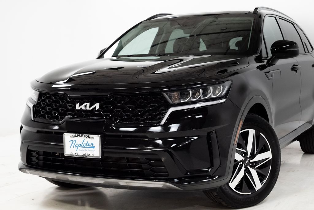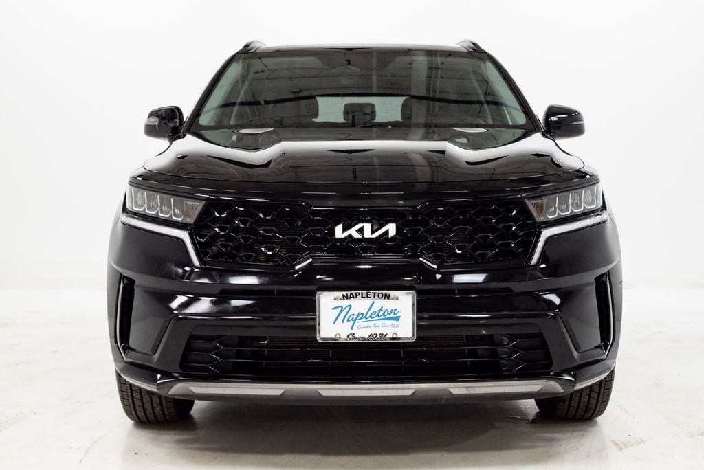 This Sorento is well equipped with Panoramic Sunroof Package (LED Interior Lighting and Power Sunroof w/Power Sunshade), 3.798 Axle Ratio, 3rd row seats: split-bench, 4-Wheel Disc Brakes, 6 Speakers, ABS brakes, Air Conditioning, Alloy wheels, AM/FM radio: SiriusXM, Apple CarPlay & Android Auto, Auto High-beam Headlights, Automatic temperature control, Brake assist, Bumpers: body-color, Carpeted Floor Mats, Delay-off headlights, Driver door bin, Driver vanity mirror, Dual front impact airbags, Dual front side impact airbags, Electronic Stability Control, Emergency communication system: UVO Link, Exterior Parking Camera Rear, Four wheel independent suspension, Front anti-roll bar, Front Bucket Seats, Front Center Armrest, Front dual zone A/C, Front reading lights, Fully automatic headlights, Heated door mirrors, Heated Front Bucket Seats, Heated front seats, Illuminated entry, Knee airbag, Leather Shift Knob, Leather steering wheel, Low tire pressure warning, Navigation System, Occupant sensing airbag, Outside temperature display, Overhead airbag, Overhead console, Panic alarm, Passenger door bin, Passenger vanity mirror, Power door mirrors, Power driver seat, Power steering, Power windows, Radio data system, Radio: AM/FM Audio System, Rear air conditioning, Rear anti-roll bar, Rear reading lights, Rear seat center armrest, Rear window defroster, Rear window wiper, Remote keyless entry, Roof rack: rails only, Security system, Smart Key w/ Push Button and Remote Start, Speed control, Speed-sensing steering, Split folding rear seat, Spoiler, Steering wheel mounted audio controls, SynTex Artificial Leather Seat Trim, Tachometer, Telescoping steering wheel, Tilt steering wheel, Traction control, Trip computer, Turn signal indicator mirrors, Variably intermittent wipers, and Wheels: 7.5J x 18" Machine-Finished Alloy.