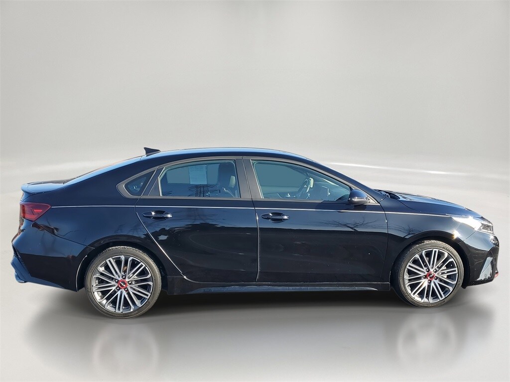 This Forte is well equipped with Forte GT, 4D Sedan, 1.6L I4 Turbo, 7-Speed Automatic, FWD, Aurora Black Pearl, Black Cloth, Navigation System, 18" x 7.5J Alloy Wheels, 4-Wheel Disc Brakes, 6 Speakers, ABS brakes, Air Conditioning, Alloy wheels, AM/FM radio: SiriusXM, Apple CarPlay & Android Auto, Auto High-beam Headlights, Automatic temperature control, Brake assist, Bumpers: body-color, Cloth & SynTex Seat Trim, Delay-off headlights, Driver door bin, Driver vanity mirror, Dual front impact airbags, Dual front side impact airbags, Electronic Stability Control, Emergency communication system, Exterior Parking Camera Rear, Four wheel independent suspension, Front anti-roll bar, Front Bucket Seats, Front Center Armrest, Front dual zone A/C, Front fog lights, Front reading lights, Fully automatic headlights, Heated door mirrors, Illuminated entry, Leather Shift Knob, Leather steering wheel, Low tire pressure warning, Occupant sensing airbag, Outside temperature display, Overhead airbag, Overhead console, Panic alarm, Passenger door bin, Passenger vanity mirror, Power door mirrors, Power steering, Power windows, Radio data system, Radio: 10.25" Display Audio, Rear anti-roll bar, Rear seat center armrest, Rear window defroster, Remote keyless entry, Security system, Speed control, Split folding rear seat, Spoiler, Sport steering wheel, Steering wheel mounted audio controls, Tachometer, Telescoping steering wheel, Tilt steering wheel, Traction control, Trip computer, Turn signal indicator mirrors, and Variably intermittent wipers.