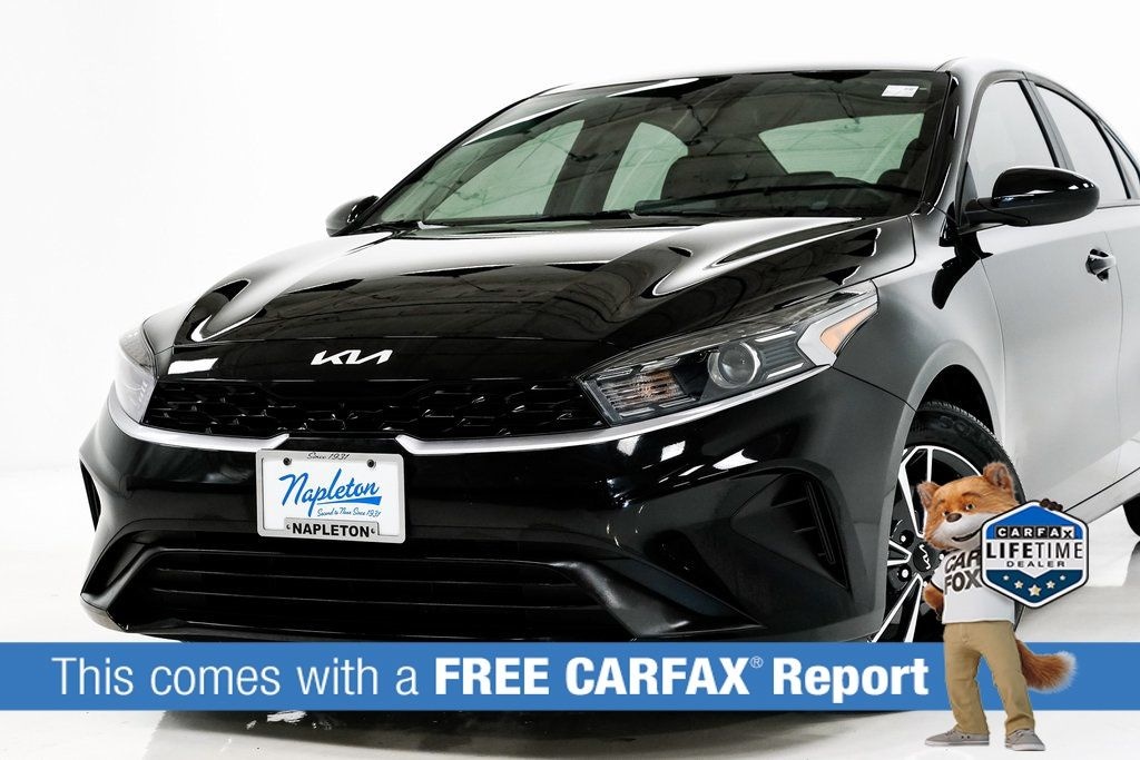 This Forte is well equipped with Apple CarPlay & Android Auto, Exterior Parking Camera Rear, Radio: 8" Display Audio, 16" x 6.5J Alloy Wheels, 4 Speakers, 4-Wheel Disc Brakes, ABS brakes, Air Conditioning, Alloy wheels, AM/FM radio, Auto High-beam Headlights, Brake assist, Bumpers: body-color, Carpet Floor Mats, Cloth Seat Trim, Delay-off headlights, Driver door bin, Driver vanity mirror, Dual front impact airbags, Dual front side impact airbags, Electronic Stability Control, Front anti-roll bar, Front Bucket Seats, Front Center Armrest, Front reading lights, Front wheel independent suspension, Fully automatic headlights, Illuminated entry, Low tire pressure warning, Occupant sensing airbag, Outside temperature display, Overhead airbag, Overhead console, Panic alarm, Passenger door bin, Passenger vanity mirror, Power door mirrors, Power steering, Power windows, Radio data system, Rear window defroster, Remote keyless entry, Security system, Speed control, Split folding rear seat, Steering wheel mounted audio controls, Tachometer, Telescoping steering wheel, Tilt steering wheel, Traction control, Trip computer, and Variably intermittent wipers.
