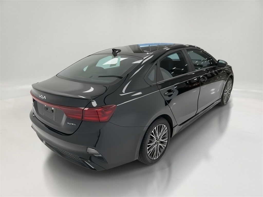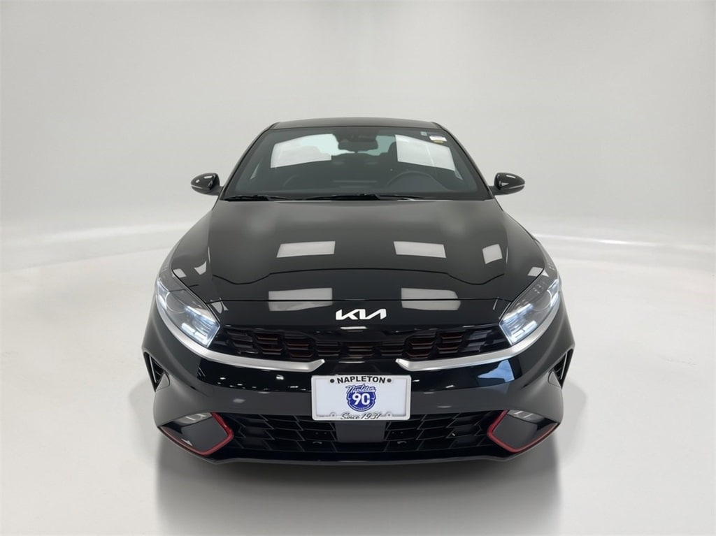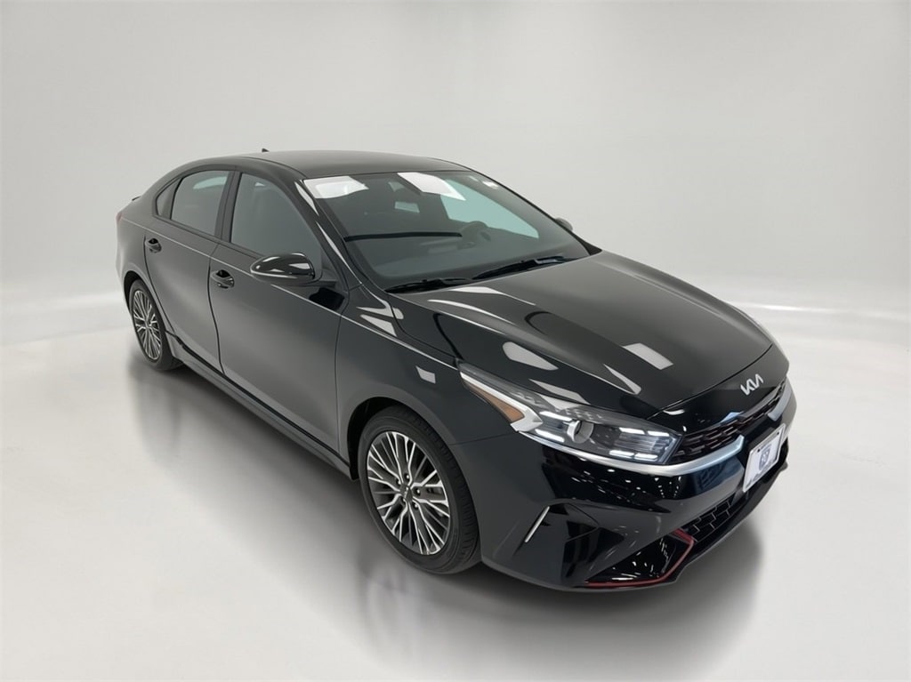 This Forte is well equipped with Forte GT-Line, 4D Sedan, 2.0L I4 MPI, CVT, FWD, Aurora Black Pearl, Black Cloth, Navigation System, 4-Wheel Disc Brakes, 6 Speakers, ABS brakes, Air Conditioning, Alloy wheels, AM/FM radio: SiriusXM, Apple CarPlay & Android Auto, Auto High-beam Headlights, Automatic temperature control, Brake assist, Bumpers: body-color, Cloth & SynTex Seat Trim, Delay-off headlights, Driver door bin, Driver vanity mirror, Dual front impact airbags, Dual front side impact airbags, Electronic Stability Control, Emergency communication system, Exterior Parking Camera Rear, Front anti-roll bar, Front Bucket Seats, Front Center Armrest, Front dual zone A/C, Front fog lights, Front reading lights, Front wheel independent suspension, Fully automatic headlights, Heated door mirrors, Illuminated entry, Leather Shift Knob, Leather steering wheel, Low tire pressure warning, Occupant sensing airbag, Outside temperature display, Overhead airbag, Overhead console, Panic alarm, Passenger door bin, Passenger vanity mirror, Power door mirrors, Power steering, Power windows, Radio data system, Radio: 10.25" Display Audio, Rear seat center armrest, Rear window defroster, Remote keyless entry, Security system, Speed control, Split folding rear seat, Spoiler, Sport steering wheel, Steering wheel mounted audio controls, Tachometer, Telescoping steering wheel, Tilt steering wheel, Traction control, Trip computer, Turn signal indicator mirrors, Variably intermittent wipers, and Wheels: 17" x 7.0 Alloy.