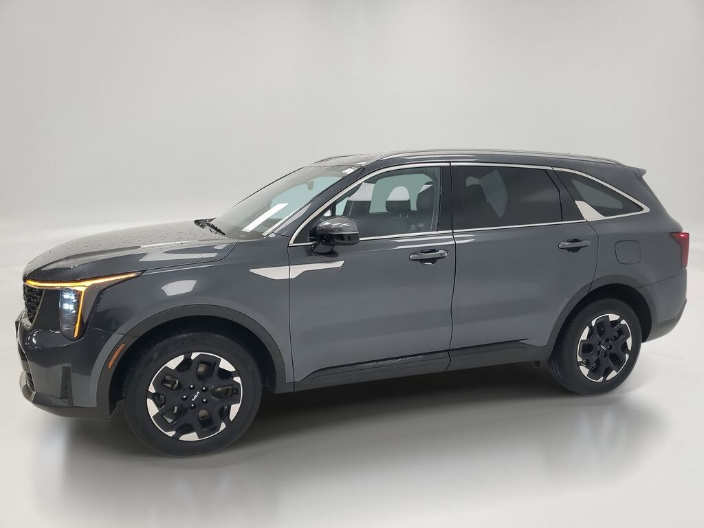 This Sorento is well equipped with Sorento S, 4D Sport Utility, 2.5L I4 DGI DOHC 16V LEV3-SULEV30 191hp, 8-Speed Automatic, AWD, Gravity Gray, Black Artificial Leather, 3rd row seats: split-bench, 4-Wheel Disc Brakes, 4.081 Axle Ratio, 6 Speakers, ABS brakes, Air Conditioning, Alloy wheels, AM/FM radio: SiriusXM, Apple CarPlay & Android Auto, Auto High-beam Headlights, Automatic temperature control, Brake assist, Bumpers: body-color, Carpeted Floor Mats, Delay-off headlights, Driver door bin, Driver vanity mirror, Dual front impact airbags, Dual front side impact airbags, Electronic Stability Control, Emergency communication system: 911 Connect, Exterior Parking Camera Rear, Four wheel independent suspension, Front anti-roll bar, Front Bucket Seats, Front Center Armrest, Front dual zone A/C, Front fog lights, Front reading lights, Fully automatic headlights, Heated door mirrors, Heated Front Bucket Seats, Heated front seats, Illuminated entry, Knee airbag, Leather Shift Knob, Leather steering wheel, Low tire pressure warning, Navigation System, Occupant sensing airbag, Outside temperature display, Overhead airbag, Overhead console, Panic alarm, Passenger door bin, Passenger vanity mirror, Power door mirrors, Power driver seat, Power steering, Power windows, Radio data system, Radio: AM/FM Audio System, Rear anti-roll bar, Rear reading lights, Rear seat center armrest, Rear side impact airbag, Rear window defroster, Rear window wiper, Remote keyless entry, Security system, Smart Key w/ Push Button and Remote Start, Speed control, Speed-sensing steering, Split folding rear seat, Spoiler, Steering wheel mounted audio controls, SynTex Artificial Leather Seat Trim, Tachometer, Telescoping steering wheel, Tilt steering wheel, Traction control, Trip computer, Turn signal indicator mirrors, Variably intermittent wipers, and Wheels: 7.5J x 18" Alloy w/Machine Finish.