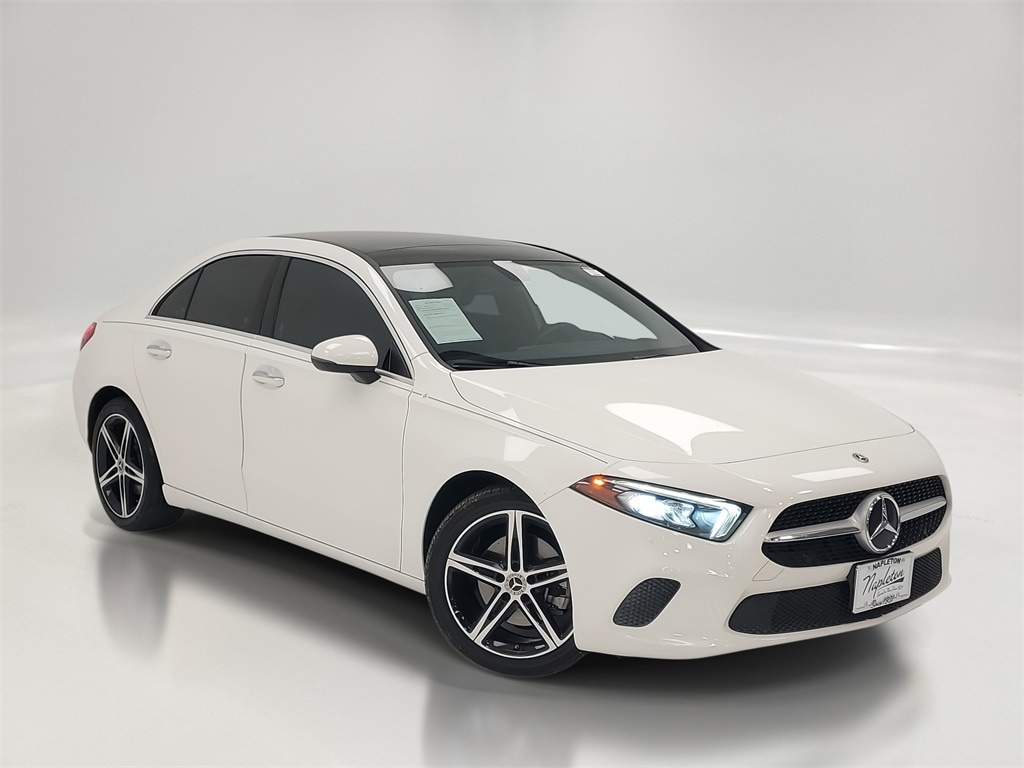 This A-Class is well equipped with Mirror Package (Auto-Dimming Rearview & Driver-Side Mirrors and Power Folding Side Mirrors), Premium Package Lite (10.25" Digital Instrument Cluster, 10.25" Media Display w/Touchscreen, and KEYLESS GO®), A-Class A 220, 4D Sedan, 2.0L I4 Turbocharged, 7-Speed Automatic, FWD, Polar White, Black w/MB-Tex Upholstery, 4-Way Lumbar Support, 4-Wheel Disc Brakes, 8 Speakers, ABS brakes, Air Conditioning, Alloy wheels, AM/FM radio, Android Auto®, Apple CarPlay®, Apple CarPlay®/Android Auto®, Automatic temperature control, Brake assist, Bumpers: body-color, Child-Seat-Sensing Airbag, Delay-off headlights, Driver door bin, Driver vanity mirror, Dual front impact airbags, Dual front side impact airbags, Electronic Stability Control, Emergency communication system: Mercedes-Benz Emergency Call Service, Extended Mobility Tires, Exterior Parking Camera Rear, Four wheel independent suspension, Front anti-roll bar, Front Bucket Seats, Front Center Armrest, Front dual zone A/C, Front reading lights, Fully automatic headlights, HD Radio, Heated door mirrors, HERMES Communications Module LTE, Illuminated entry, Knee airbag, Low tire pressure warning, MB-Tex Upholstery, Memory seat, Occupant sensing airbag, Outside temperature display, Overhead airbag, Overhead console, Panic alarm, Passenger door bin, Passenger vanity mirror, Power door mirrors, Power driver seat, Power Driver Seat & Steering Column w/Memory, Power Front Bucket Seats w/Memory, Power moonroof: Panorama, Power passenger seat, Power Passenger Seat w/Memory, Power steering, Power windows, Premium audio system: MBUX, Radio data system, Radio: MBUX Multimedia System, Rain sensing wipers, Rear anti-roll bar, Rear reading lights, Rear seat center armrest, Rear window defroster, Remote keyless entry, Security system, Smartphone Integration, Speed control, Speed-sensing steering, Split folding rear seat, Steering wheel mounted audio controls, Tachometer, Telescoping steering wheel, Tilt steering wheel, Traction control, Trip computer, Turn signal indicator mirrors, Variably intermittent wipers, and Wheels: 17" 10-Spoke.