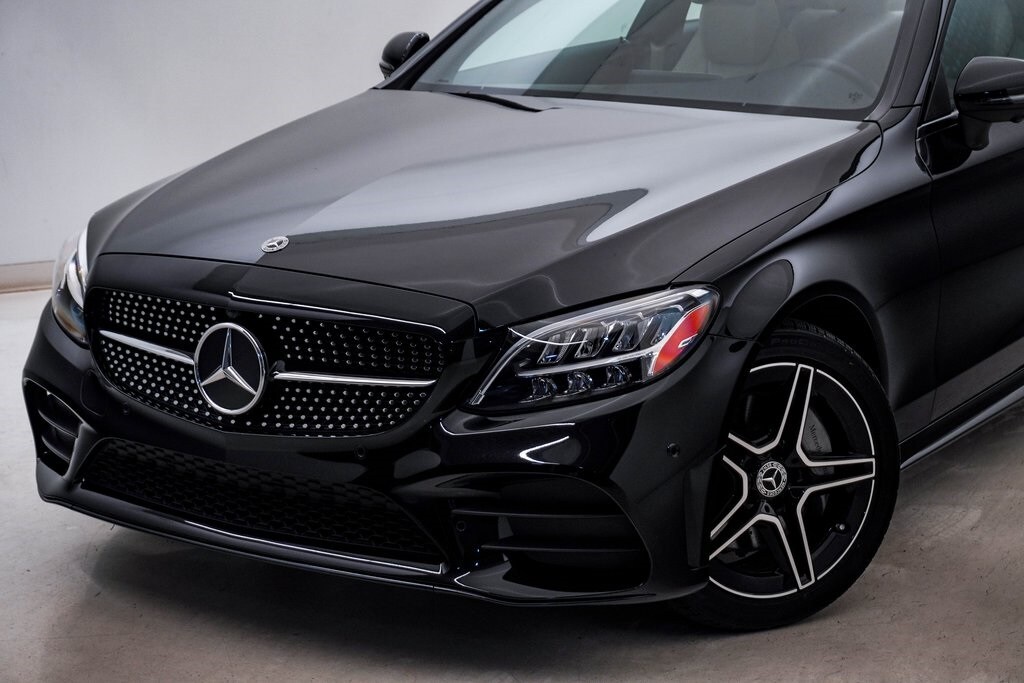 This C-Class is well equipped with 4MATIC®, 10.25" High-Resolution Central Color Display, 13 Speakers, 4-Way Lumbar Support, 4-Wheel Disc Brakes, ABS brakes, Air Conditioning, Alloy wheels, AM/FM radio: SiriusXM, AM/FM Stereo, Android Auto®, Anti-whiplash front head restraints, Apple CarPlay®, Apple CarPlay®/Android Auto®, Auto High-beam Headlights, Auto tilt-away steering wheel, Auto-dimming door mirrors, Auto-dimming Rear-View mirror, Automatic temperature control, Brake assist, Bumpers: body-color, Burmester® Surround Sound System, Child-Seat-Sensing Airbag, Compass, Delay-off headlights, Driver door bin, Driver vanity mirror, Dual front impact airbags, Dual front side impact airbags, DYNAMIC SELECT, Electronic Stability Control, Emergency communication system: Mercedes me connect, Exterior Parking Camera Rear, Four wheel independent suspension, Front anti-roll bar, Front Bucket Seats, Front Center Armrest, Front dual zone A/C, Front reading lights, Fully automatic headlights, Garage door transmitter: HomeLink, Genuine wood console insert, Genuine wood dashboard insert, Genuine wood door panel insert, Head restraints memory, Heated door mirrors, Heated front seats, Illuminated entry, Knee airbag, Low tire pressure warning, MB-Tex Upholstery, Memory seat, Occupant sensing airbag, Outside temperature display, Overhead airbag, Overhead console, Panic alarm, Passenger door bin, Passenger vanity mirror, Power adjustable front head restraints, Power door mirrors, Power driver seat, Power Heated Front Seats w/Driver Memory, Power moonroof: Panorama, Power passenger seat, Power steering, Power windows, Radio data system, Rain sensing wipers, Rear anti-roll bar, Rear fog lights, Rear window defroster, Remote keyless entry, Security system, SiriusXM Satellite Radio, Smartphone Integration, Speed control, Speed-sensing steering, Split folding rear seat, Steering wheel memory, Steering wheel mounted audio controls, Tachometer, Telescoping steering wheel, Tilt steering wheel, Traction control, Trip computer, Turn signal indicator mirrors, Variably intermittent wipers, Weather band radio, and Wheels: 18" Split 5-Spoke.