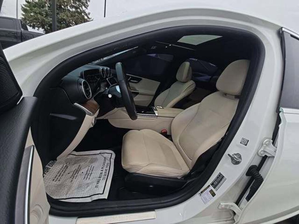 This C-Class is well equipped with Premium Trim Package, 11.9" Center Touchscreen Display, 18" 5-Spoke Wheels, 4-way Power Driver's Lumbar Support, 4-Wheel Disc Brakes, 5 Speakers, ABS brakes, Air Conditioning, Alloy wheels, AM/FM radio, Anti-whiplash front head restraints, Apple CarPlay®/Android Auto®, Auto High-beam Headlights, Auto tilt-away steering wheel, Auto-dimming door mirrors, Auto-dimming Rear-View mirror, Automatic temperature control, Brake assist, Bumpers: body-color, Child-Seat-Sensing Airbag, Compass, Delay-off headlights, Driver door bin, Driver vanity mirror, Dual front impact airbags, Dual front side impact airbags, Electronic Stability Control, Emergency communication system: Mercedes-Benz Emergency Call Service, Exterior Parking Camera Rear, Four wheel independent suspension, Front anti-roll bar, Front Bucket Seats, Front Center Armrest, Front dual zone A/C, Front reading lights, Fully automatic headlights, Garage door transmitter: HomeLink, Genuine wood dashboard insert, Head restraints memory, Heated door mirrors, Heated front seats, Illuminated entry, Knee airbag, Low tire pressure warning, MB-Tex Upholstery, Memory seat, Occupant sensing airbag, Outside temperature display, Overhead airbag, Overhead console, Panic alarm, Passenger door bin, Passenger vanity mirror, Power adjustable front head restraints, Power door mirrors, Power driver seat, Power Heated Front Seats w/Memory, Power moonroof, Power passenger seat, Power steering, Power windows, Premium audio system: MBUX, Radio data system, Radio: FrontBass 5-Speaker Audio System, Rain sensing wipers, Rear anti-roll bar, Rear fog lights, Rear reading lights, Rear seat center armrest, Rear window defroster, Remote keyless entry, Security system, Speed control, Speed-sensing steering, Split folding rear seat, Steering wheel memory, Steering wheel mounted audio controls, Tachometer, Telescoping steering wheel, Tilt steering wheel, Traction control, Trip computer, Turn signal indicator mirrors, Variably intermittent wipers, and Weather band radio.