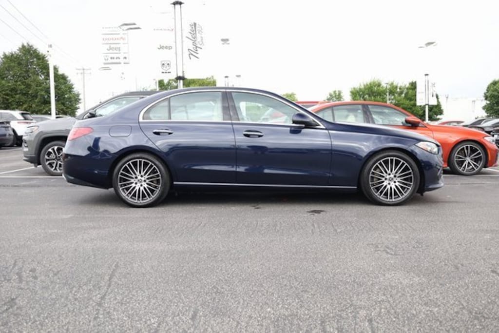 This C-Class is well equipped with Premium Trim Package, 11.9" Center Touchscreen Display, 18" 5-Spoke Wheels, 4-way Power Driver's Lumbar Support, 4-Wheel Disc Brakes, 5 Speakers, ABS brakes, Air Conditioning, Alloy wheels, AM/FM radio, Anti-whiplash front head restraints, Apple CarPlay®/Android Auto®, Auto High-beam Headlights, Auto tilt-away steering wheel, Auto-dimming door mirrors, Auto-dimming Rear-View mirror, Automatic temperature control, Brake assist, Bumpers: body-color, Child-Seat-Sensing Airbag, Compass, Delay-off headlights, Driver door bin, Driver vanity mirror, Dual front impact airbags, Dual front side impact airbags, Electronic Stability Control, Emergency communication system: Mercedes-Benz Emergency Call Service, Exterior Parking Camera Rear, Four wheel independent suspension, Front anti-roll bar, Front Bucket Seats, Front Center Armrest, Front dual zone A/C, Front reading lights, Fully automatic headlights, Garage door transmitter: HomeLink, Genuine wood dashboard insert, Head restraints memory, Heated door mirrors, Heated front seats, Illuminated entry, Knee airbag, Low tire pressure warning, MB-Tex Upholstery, Memory seat, Navigation System, Occupant sensing airbag, Outside temperature display, Overhead airbag, Overhead console, Panic alarm, Passenger door bin, Passenger vanity mirror, Power adjustable front head restraints, Power door mirrors, Power driver seat, Power Heated Front Seats w/Memory, Power moonroof, Power passenger seat, Power steering, Power windows, Premium audio system: MBUX, Radio data system, Radio: FrontBass 5-Speaker Audio System, Rain sensing wipers, Rear anti-roll bar, Rear fog lights, Rear reading lights, Rear seat center armrest, Rear window defroster, Remote keyless entry, Security system, Speed control, Speed-sensing steering, Split folding rear seat, Steering wheel memory, Steering wheel mounted audio controls, Tachometer, Telescoping steering wheel, Tilt steering wheel, Traction control, Trip computer, Turn signal indicator mirrors, Variably intermittent wipers, and Weather band radio.