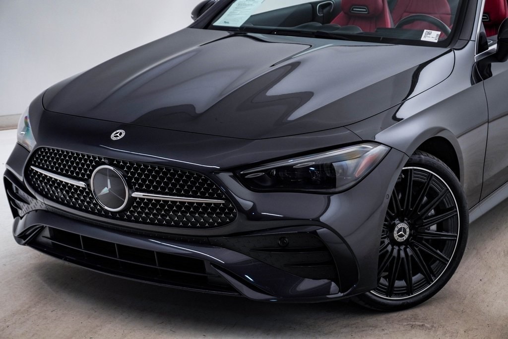 This CLE is well equipped with Driver Assistance Package (Active Lane Change Assist, Active Speed Limit Assist, BAS PLUS w/Cross-Traffic Assist, DISTRONIC PLUS® w/Steering Assist & Stop & Go Assist, PRE-SAFE® Brake w/Pedestrian Recognition, PRE-SAFE® Impulse Side, PRE-SAFE® PLUS, and Route-Based Speed Adaptation), Driver Assistance Package Plus, Night Package (High-Gloss Black Elements), I6, 15 Speakers, 4-Wheel Disc Brakes, ABS brakes, Air Conditioning, Alloy wheels, AM/FM radio: SiriusXM w/360L, Apple CarPlay®/Android Auto®, Auto High-beam Headlights, Auto tilt-away steering wheel, Auto-dimming door mirrors, Auto-dimming Rear-View mirror, Automatic temperature control, Brake assist, Bumpers: body-color, Child-Seat-Sensing Airbag, Compass, Convertible roof lining, Convertible roof wind blocker, Delay-off headlights, Driver door bin, Driver vanity mirror, Dual front impact airbags, Dual front side impact airbags, Electronic Stability Control, Emergency communication system: Mercedes-Benz Emergency Call Service, Exterior Parking Camera Rear, Four wheel independent suspension, Front anti-roll bar, Front Bucket Seats, Front Center Armrest, Front dual zone A/C, Front reading lights, Front Sport Seats w/Memory, Fully automatic headlights, Garage door transmitter: HomeLink, Glass rear window, Head restraints memory, Heated door mirrors, Heated Front Seats, Heated front seats, Illuminated entry, Integrated roll-over protection, Knee airbag, Leather steering wheel, Low tire pressure warning, MB-Tex Seat Trim, Memory seat, Navigation system: MBUX, Occupant sensing airbag, Outside temperature display, Overhead airbag, Overhead console, Panic alarm, Passenger door bin, Passenger vanity mirror, Power adjustable front head restraints, Power convertible roof, Power door mirrors, Power driver seat, Power passenger seat, Power steering, Power windows, Radio data system, Radio: 3rd Generation MBUX Multimedia System, Rain sensing wipers, Rear anti-roll bar, Rear fog lights, Rear window defroster, Remote keyless entry, Security system, SiriusXM Satellite Radio, Speed control, Speed-sensing steering, Split folding rear seat, Sport steering wheel, Steering wheel memory, Steering wheel mounted audio controls, Tachometer, Telescoping steering wheel, Tilt steering wheel, Traction control, Trip computer, Turn signal indicator mirrors, Variably intermittent wipers, and Wheels: 19" AMG® Multispoke w/Black Accents.