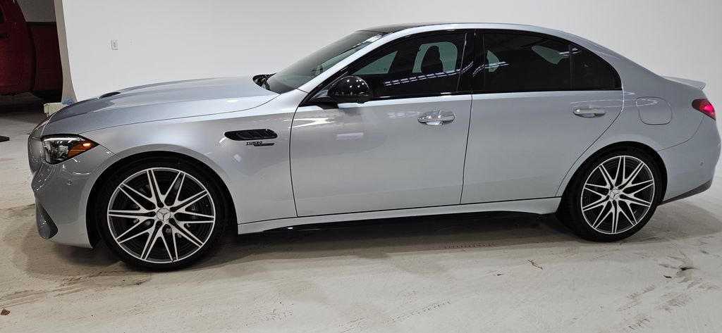 This C-Class is well equipped with C 63 S AMG® 4MATIC®, 4D Sedan, 2.0L I4 Turbocharged, 9-Speed Automatic, 4MATIC®, Cirrus Silver Metallic, AMG Black w/Leather Upholstery, Navigation system: MB Navigation, Power moonroof: Panorama, 15 Speakers, 4-Wheel Disc Brakes, ABS brakes, Adaptive suspension, Air Conditioning, Alloy wheels, AM/FM radio: SiriusXM, Apple CarPlay®/Android Auto®, Auto High-beam Headlights, Auto tilt-away steering wheel, Auto-dimming door mirrors, Auto-dimming Rear-View mirror, Automatic temperature control, Brake assist, Bumpers: body-color, Compass, Delay-off headlights, Driver door bin, Driver vanity mirror, Dual front impact airbags, Dual front side impact airbags, Electronic Stability Control, Emergency communication system: Mercedes-Benz Emergency Call Service, Exterior Parking Camera Rear, Four wheel independent suspension, Front anti-roll bar, Front Bucket Seats, Front Center Armrest, Front dual zone A/C, Front reading lights, Fully automatic headlights, Garage door transmitter: HomeLink, Genuine wood dashboard insert, Head restraints memory, Heated door mirrors, Heated front seats, Illuminated entry, Knee airbag, Leather steering wheel, Low tire pressure warning, MB Navigation, MB-Tex/Microfiber Upholstery, Memory seat, Occupant sensing airbag, Outside temperature display, Overhead airbag, Overhead console, Panic alarm, Passenger door bin, Passenger vanity mirror, Power adjustable front head restraints, Power door mirrors, Power driver seat, Power Heated Front Seats w/Memory, Power passenger seat, Power steering, Power windows, Premium audio system: MBUX, Radio data system, Radio: Burmester® 3D Surround Sound System, Rain sensing wipers, Rear anti-roll bar, Rear fog lights, Rear reading lights, Rear seat center armrest, Rear window defroster, Remote keyless entry, Security system, Speed control, Speed-sensing steering, Split folding rear seat, Spoiler, Sport steering wheel, Steering wheel memory, Steering wheel mounted audio controls, Tachometer, Telescoping steering wheel, Tilt steering wheel, Traction control, Trip computer, Turn signal indicator mirrors, Variably intermittent wipers, Weather band radio, and Wheels: 19" x 9.5J AMG® Twin 5-Spoke.