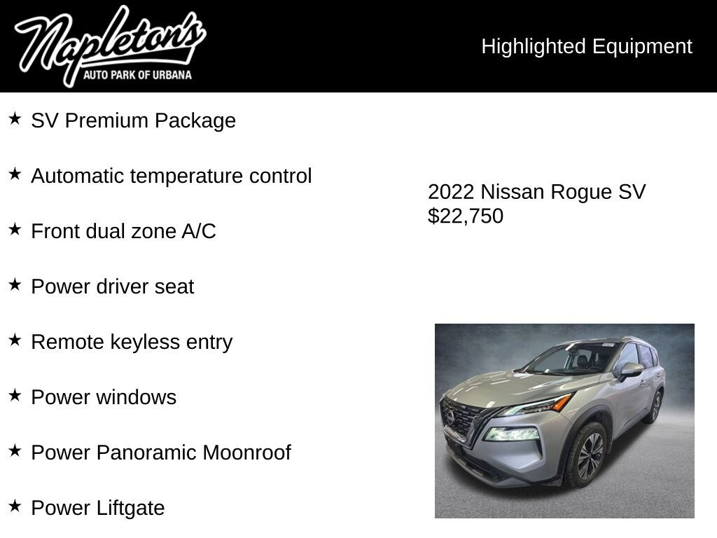 Backed by Nissan's commitment to quality, this 2022 Rogue SV Premium Package is a true standout in its class. With its impressive combination of performance, technology, and premium features, it's the perfect SUV to elevate your driving experience. Visit our showroom today and let us demonstrate why this Rogue should be your next vehicle.