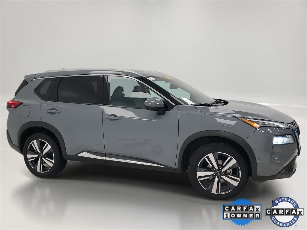 This Rogue is well equipped with Rogue SL, 4D Sport Utility, 1.5L I3 Turbocharged DOHC 12V LEV3-ULEV50 201hp, CVT with Xtronic, AWD, Boulder Gray Pearl, 19" Aluminum Alloy Wheels, 4-Wheel Disc Brakes, 5.604 Axle Ratio, 6 Speakers, ABS brakes, Air Conditioning, Alloy wheels, AM/FM Radio, AM/FM radio: SiriusXM, Auto High-beam Headlights, Auto-dimming Rear-View mirror, Automatic temperature control, Brake assist, Bumpers: body-color, Delay-off headlights, Driver door bin, Driver vanity mirror, Dual front impact airbags, Dual front side impact airbags, Electronic Stability Control, Emergency communication system: NissanConnect Services, Four wheel independent suspension, Front anti-roll bar, Front Bucket Seats, Front Center Armrest, Front dual zone A/C, Front reading lights, Fully automatic headlights, Heated door mirrors, Heated Front Bucket Seats, Heated front seats, Heated steering wheel, Illuminated entry, Knee airbag, Leather steering wheel, Leather-Appointed Seat Trim, Low tire pressure warning, Memory seat, NissanConnect featuring Apple CarPlay and Android Auto, Occupant sensing airbag, Outside temperature display, Overhead airbag, Overhead console, Panic alarm, Passenger door bin, Passenger vanity mirror, Power door mirrors, Power driver seat, Power Liftgate, Power moonroof, Power passenger seat, Power steering, Power windows, Radio data system, Rear anti-roll bar, Rear Parking Sensors, Rear reading lights, Rear seat center armrest, Rear side impact airbag, Rear window defroster, Rear window wiper, Remote keyless entry, Security system, Speed control, Speed-Sensitive Wipers, Split folding rear seat, Spoiler, Steering wheel mounted audio controls, Tachometer, Telescoping steering wheel, Tilt steering wheel, Traction control, Trip computer, Turn signal indicator mirrors, and Variably intermittent wipers.
