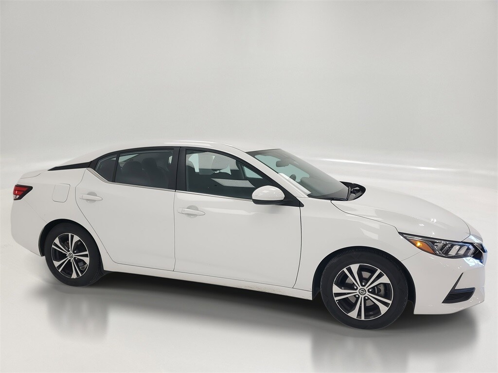 This Sentra is well equipped with Sentra SV, 4D Sedan, 2.0L DOHC, CVT with Xtronic, FWD, Fresh Powder, Charcoal Cloth, 16" Alloy Wheels, 4-Wheel Disc Brakes, 6 Speakers, ABS brakes, Air Conditioning, Alloy wheels, AM/FM radio: SiriusXM, Auto High-beam Headlights, Blind Spot Warning, Brake assist, Bumpers: body-color, Carpeted Floor Mats w/Trunk Mat, Delay-off headlights, Driver door bin, Driver vanity mirror, Dual front impact airbags, Dual front side impact airbags, Electronic Stability Control, Four wheel independent suspension, Front anti-roll bar, Front Bucket Seats, Front Center Armrest, Front reading lights, Fully automatic headlights, Heated door mirrors, Illuminated entry, Knee airbag, Low tire pressure warning, NissanConnect featuring Apple CarPlay and Android Auto, Occupant sensing airbag, Outside temperature display, Overhead airbag, Overhead console, Panic alarm, Passenger door bin, Passenger vanity mirror, Power door mirrors, Power steering, Power windows, Premium Cloth Seat Trim, Radio data system, Radio: AM/FM w/RDS/MP3/Aux-In, Rear anti-roll bar, Rear Parking Sensors, Rear side impact airbag, Rear window defroster, Remote keyless entry, Security system, Speed control, Speed-sensing steering, Split folding rear seat, Steering wheel mounted audio controls, Tachometer, Telescoping steering wheel, Tilt steering wheel, Traction control, Trip computer, and Variably intermittent wipers.