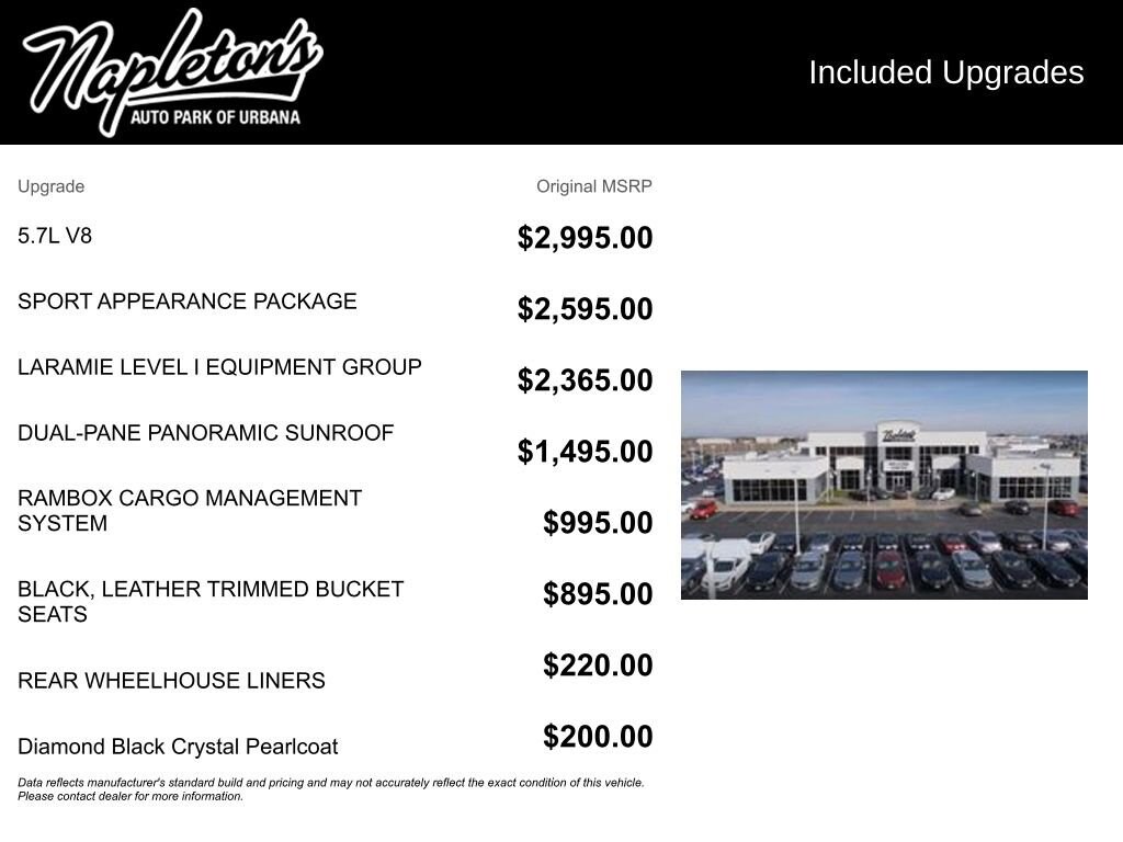From the bold Sport Appearance styling to the advanced driver assistance technologies, this Ram 1500 Laramie was meticulously engineered to elevate your daily drives and weekend adventures. The spacious, well-appointed cabin features premium leather-trimmed bucket seats with heating and ventilation, ensuring exceptional comfort mile after mile.