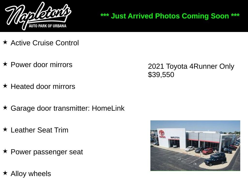 Get used cars in Chicago at UsedCarsChicago.com. We have over 1000 vehicles in stock and ready to drive! We are Chicago's used car guide. This 2021 Toyota 4Runner is only one of our massive inventory of used cars in the Chicago area.- We're here to help: 217-367-1222