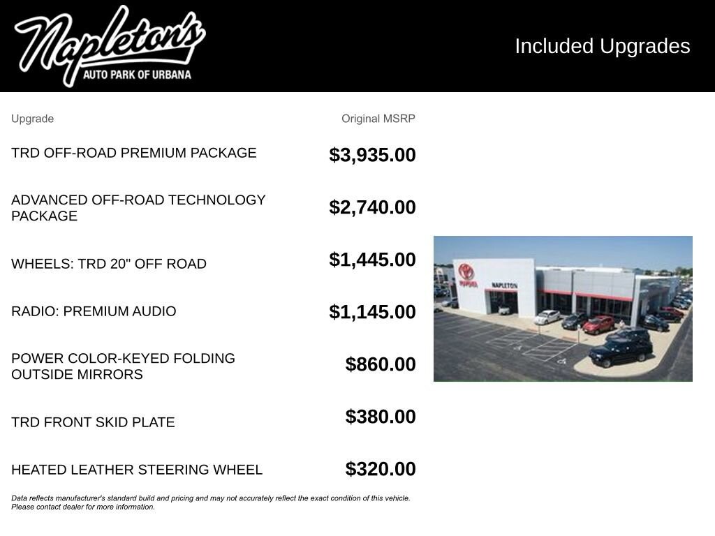 Under the hood, you'll find a powerful 3.4L V6 engine mated to a smooth-shifting 10-speed automatic transmission, delivering impressive 4WD capability and an EPA-estimated 23 MPG on the highway. The TRD Off-Road suspension with Bilstein shocks provides a refined, confident ride, while the front skid plate and mud guards protect your investment from the elements.